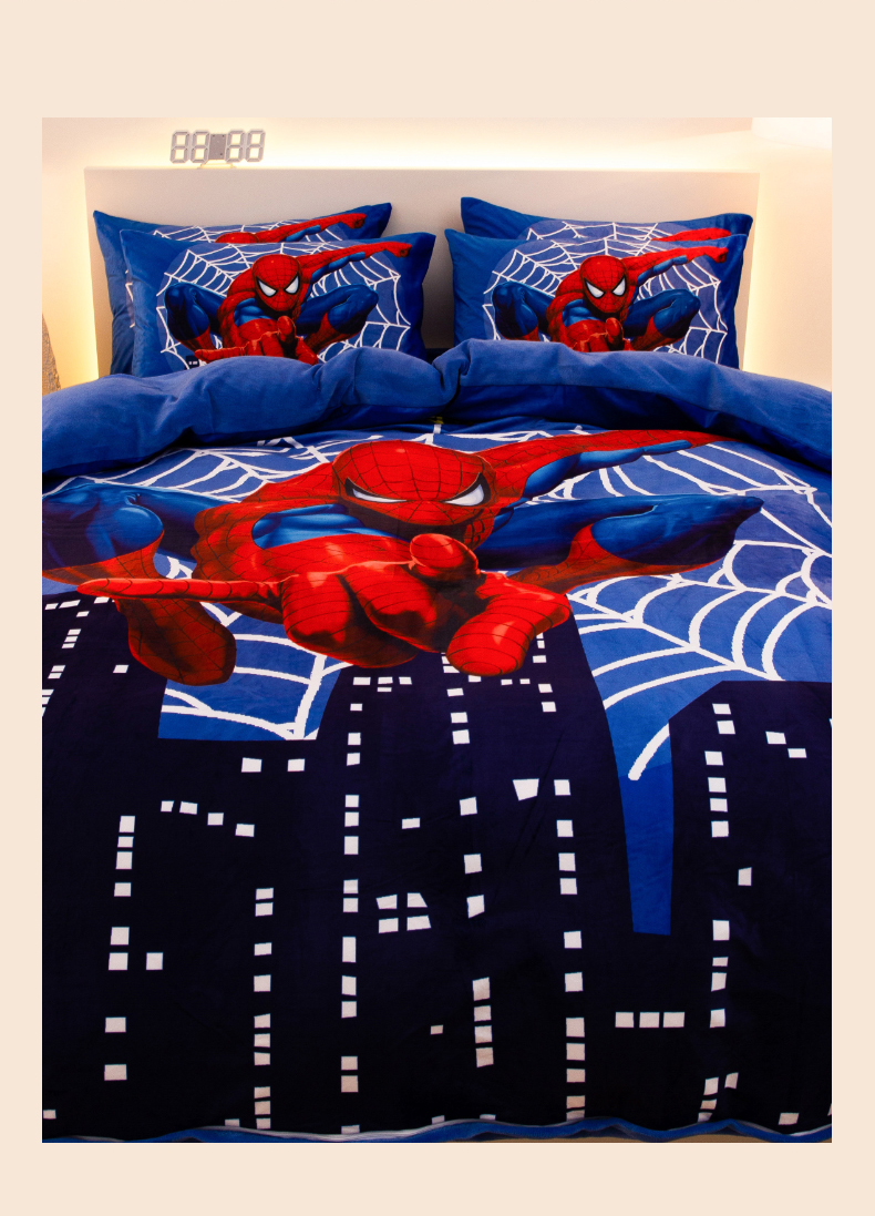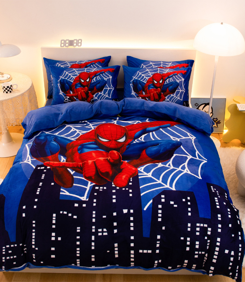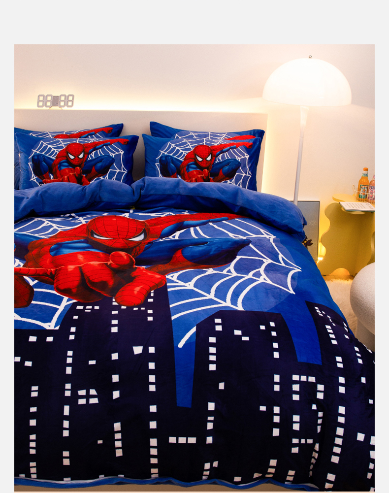 一电 2025外贸跨境电商儿童卡通床上四件套亲肤牛奶绒学生三件床单被套加大珊瑚宝宝卡通 蜘蛛侠