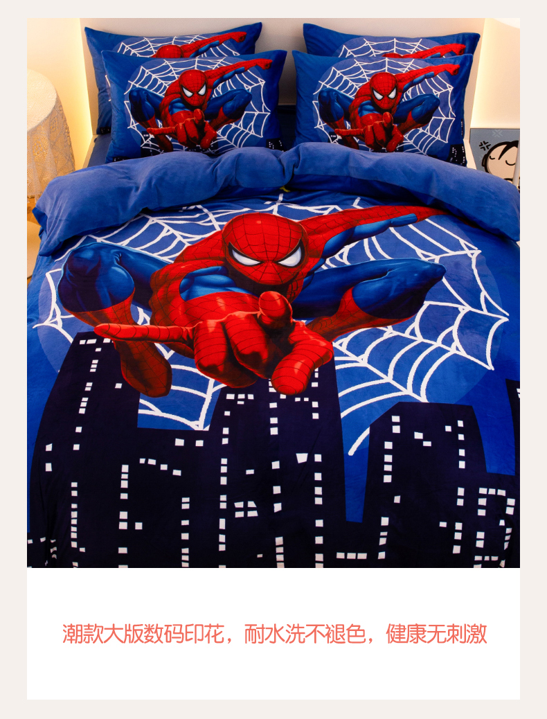 商品名称:一电 2025外贸跨境电商儿童卡通床上四件套亲肤牛奶绒学生三件床单被套加大珊瑚宝宝卡通 蜘蛛侠