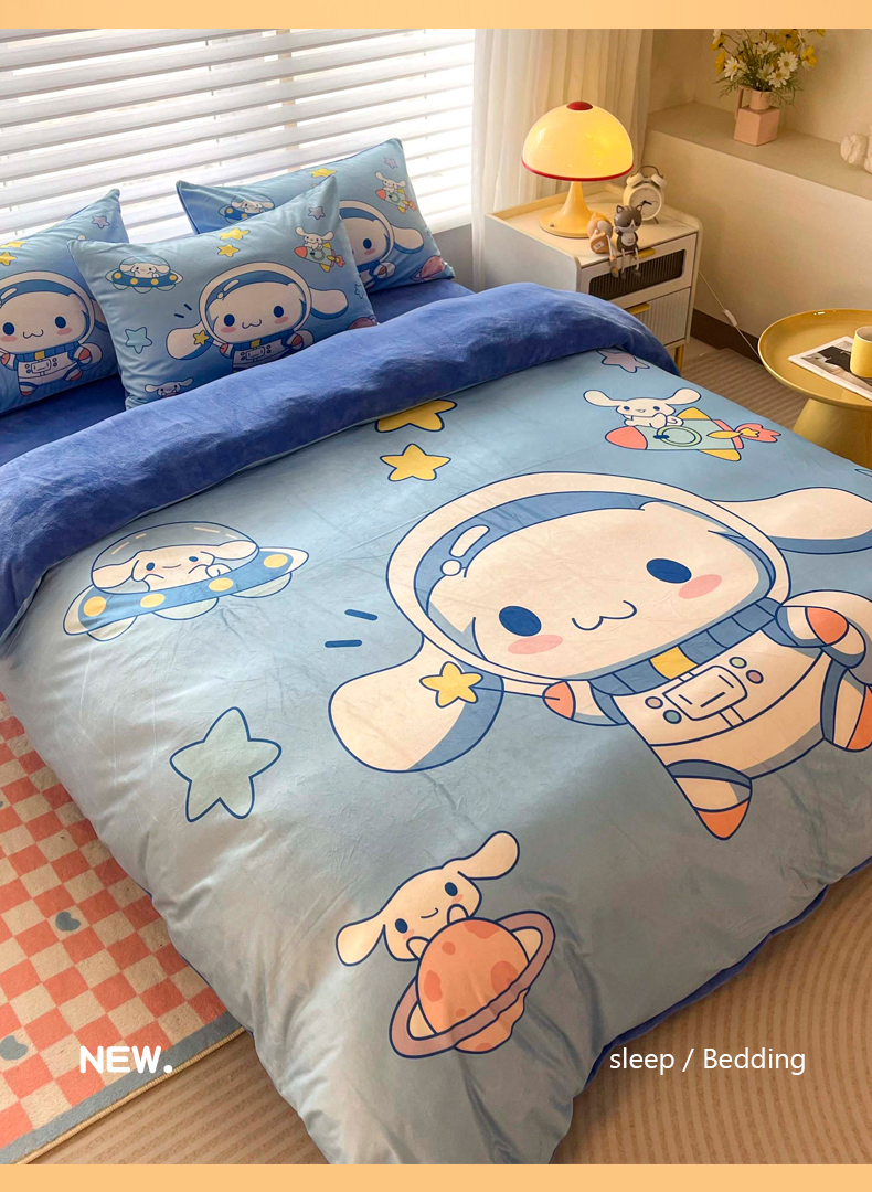 一电 2025外贸跨境电商儿童卡通床上四件套亲肤牛奶绒学生三件床单被套加大珊瑚宝宝卡通单被套3 太空玉桂狗