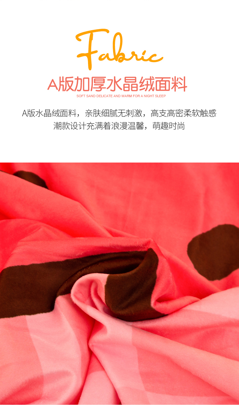 商品名称:一电 2025外贸跨境电商儿童卡通床上四件套亲肤牛奶绒学生三件床单被套加大珊瑚宝宝卡通单被套 草莓动物