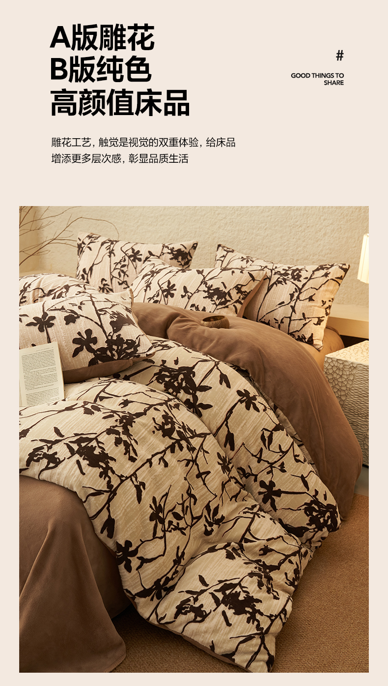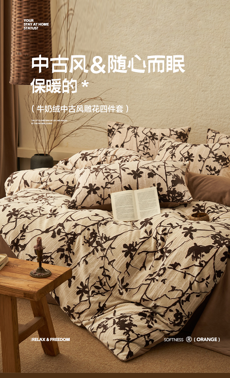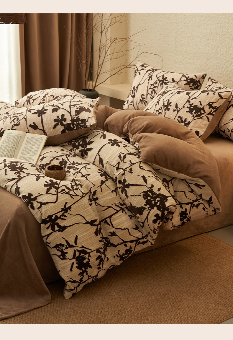 当前位置: 91家纺网 > 商品网购 > 床品套件 > 四件套 > 雕花绒四件套 > 寐绸家纺 2025秋冬新款230g中古风牛奶绒雕花四件套 中古-素雅