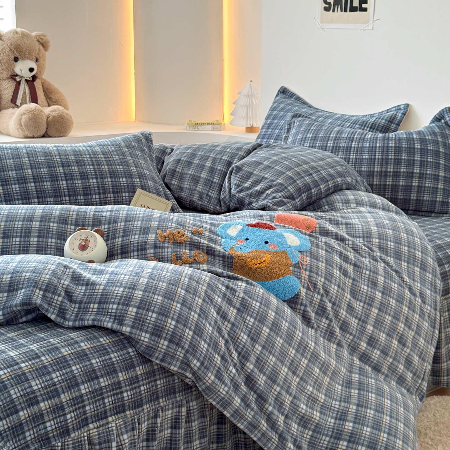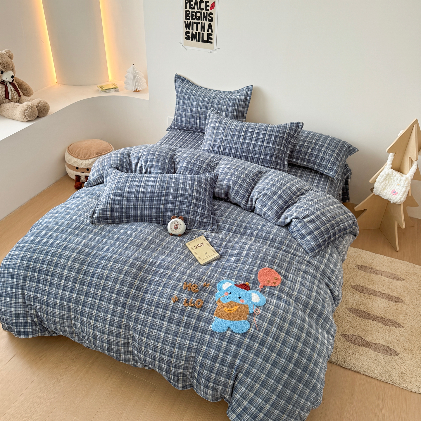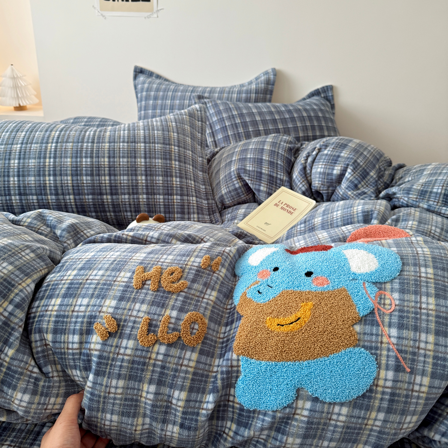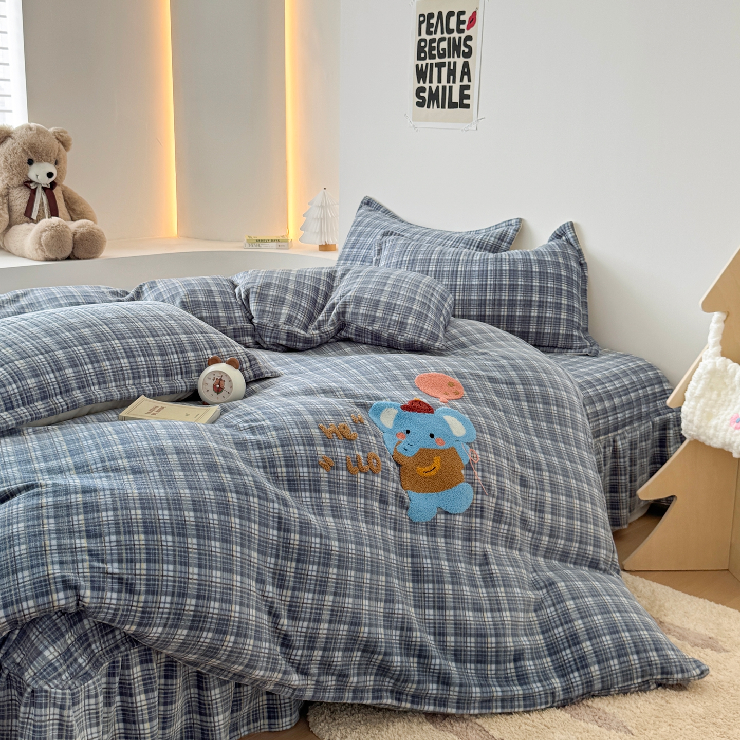希朵家纺 2025新款可爱牛奶绒毛巾绣床盖四件套 小象兰