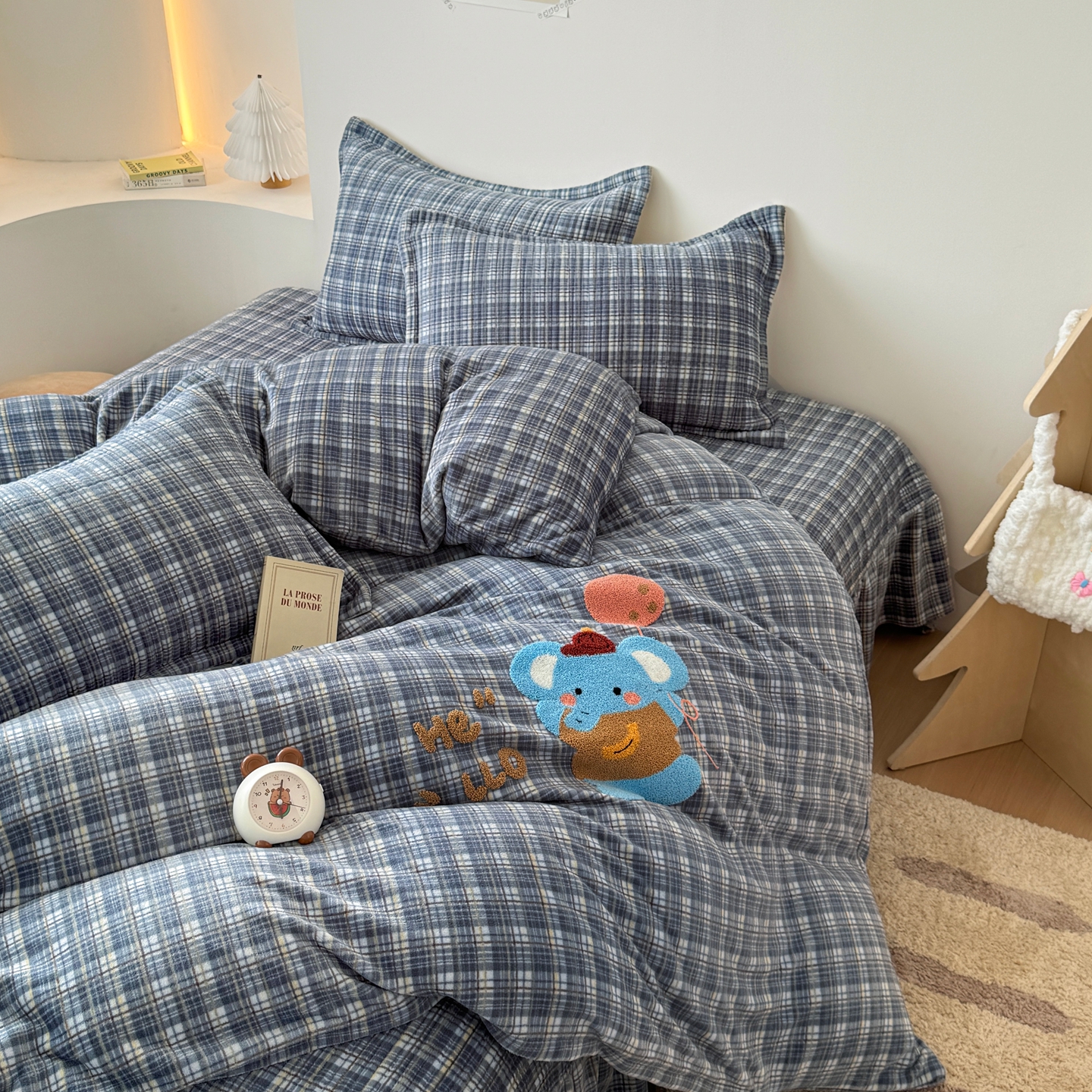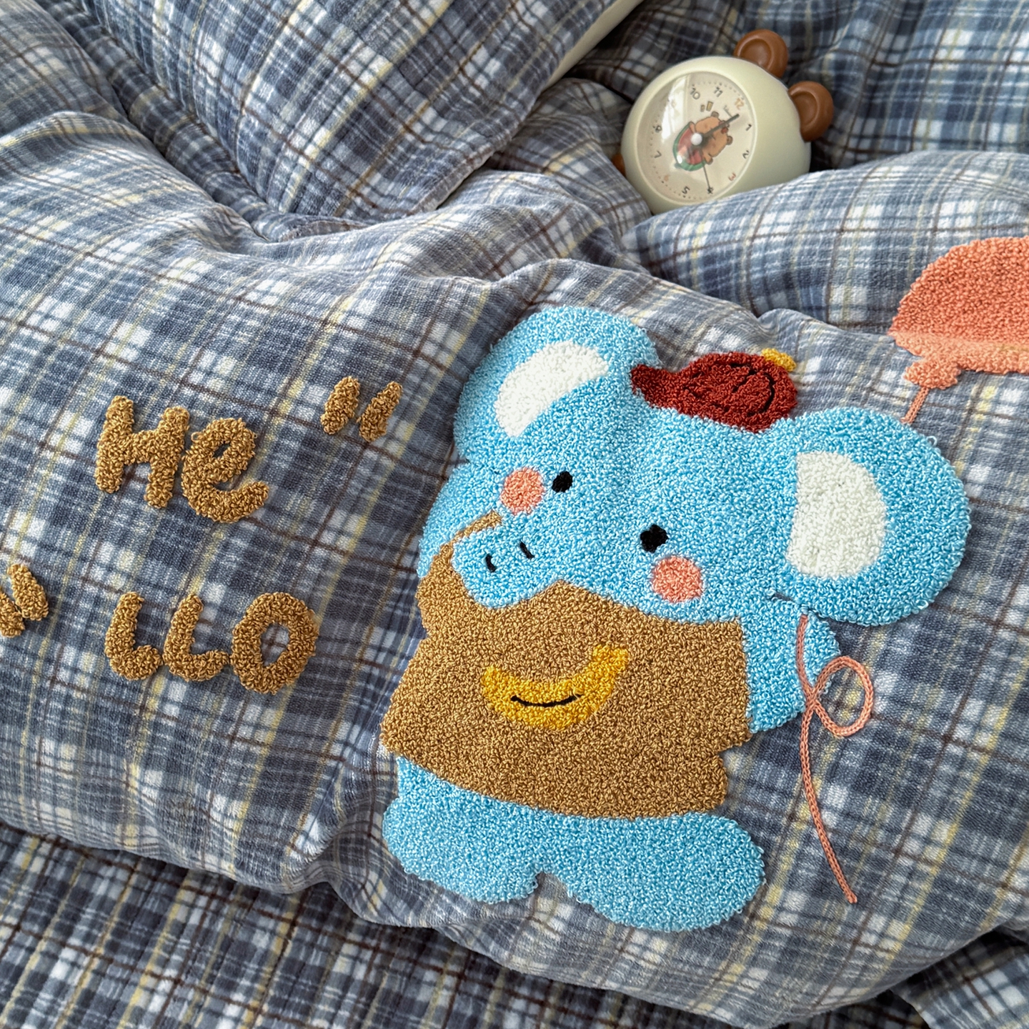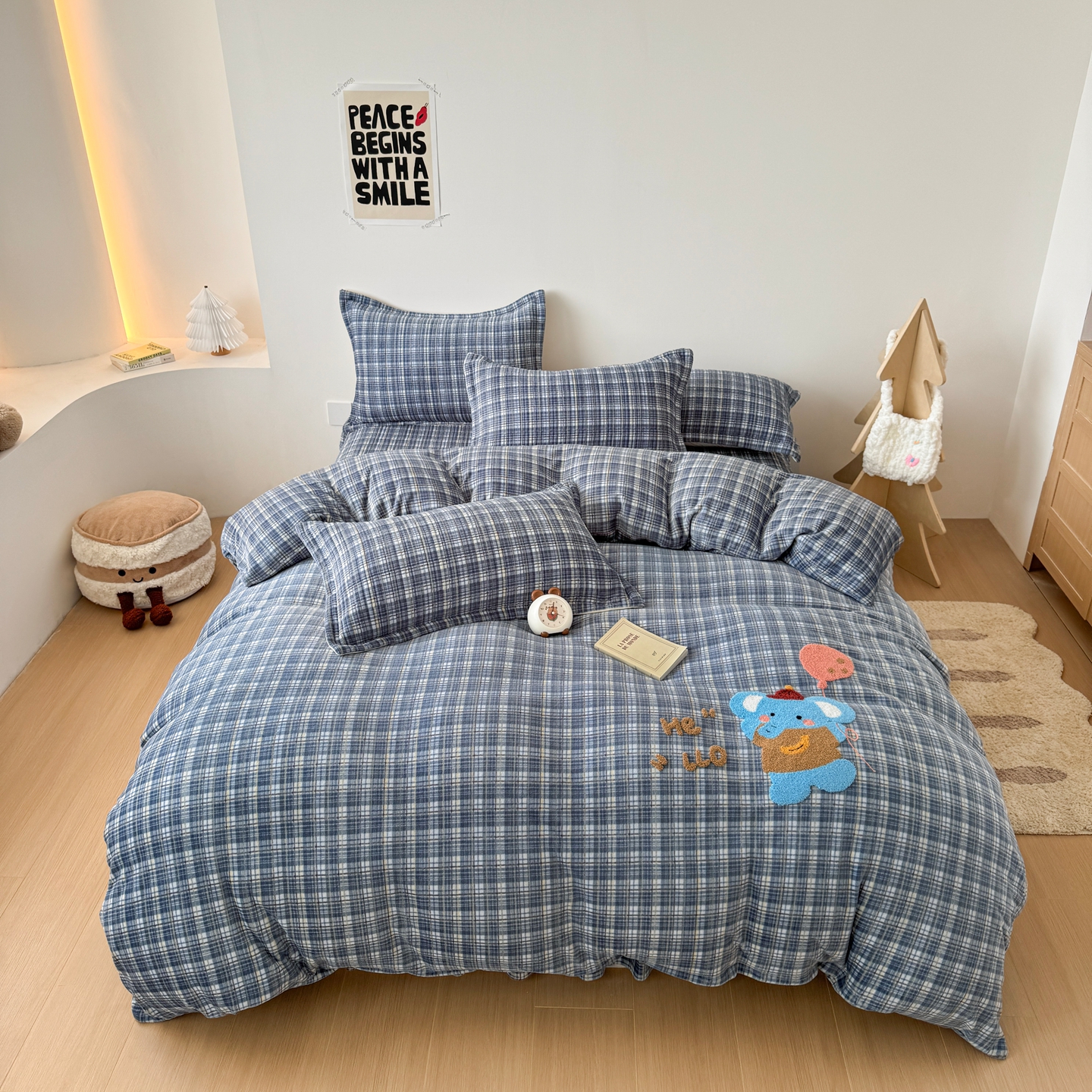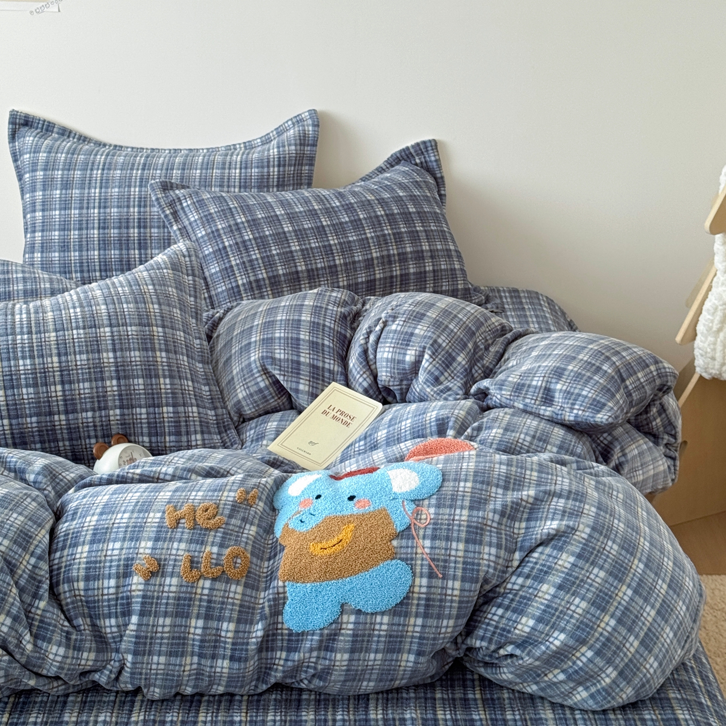 希朵家纺 2025新款可爱牛奶绒毛巾绣床盖四件套 小象兰