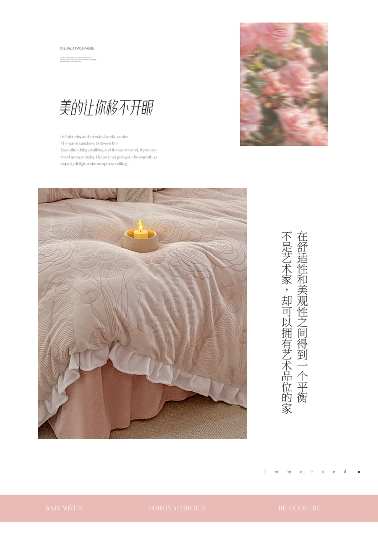 (总)野合家纺 2025新款加厚雕花牛奶绒床盖款四件套,不止玫瑰-咖,叶语悠然-绿,叶霖-灰,春和漫叶-兰,半夏风情-绿,半夏风情-粉,叶伴花香-灰,蝶恋花语-灰