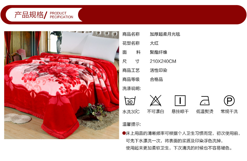 商品名称:新月家纺(锦威郎) 2025新款加厚超柔月光毯 1129红紫