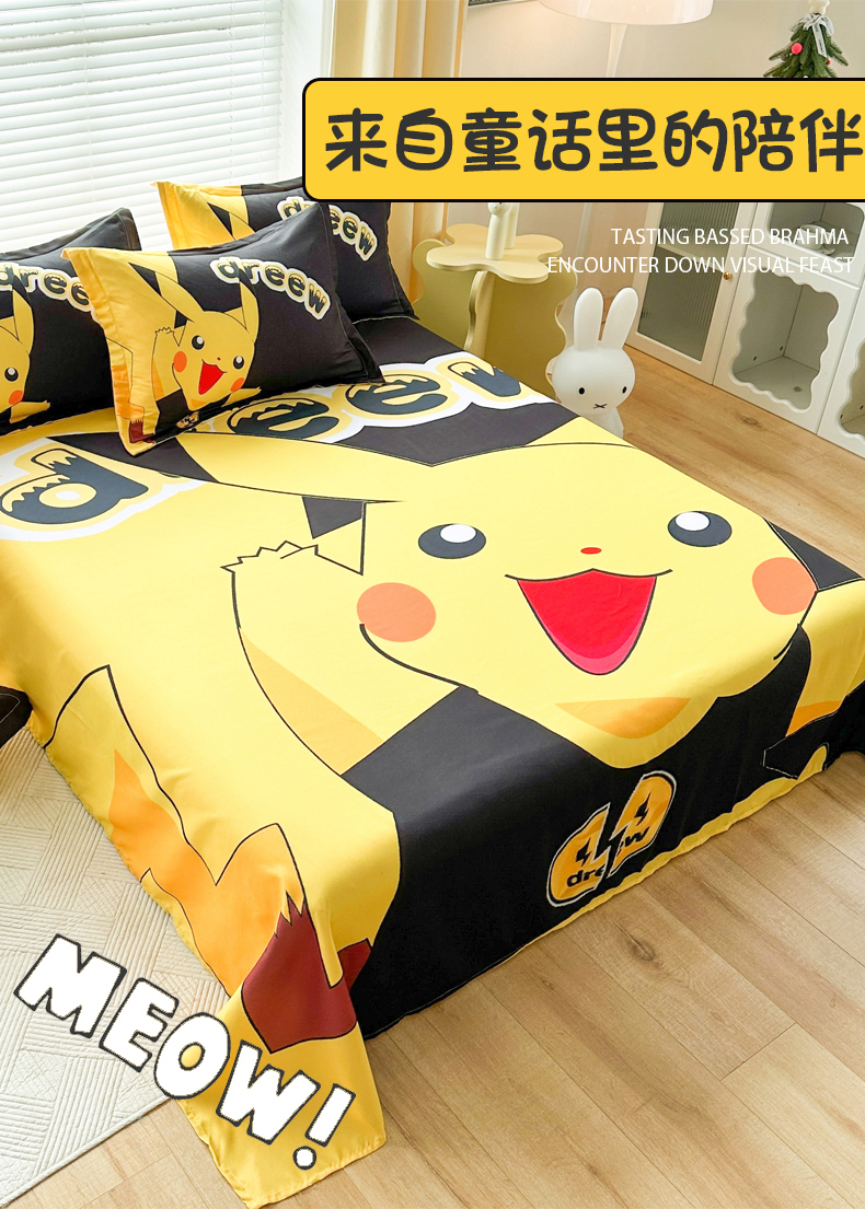 • 91家纺网 家纺一手货源 找家纺 一电 2025新款卡通床单单件被单学生宿舍被罩三件套单人儿童上下床床单-第一批 闪电皮卡丘
