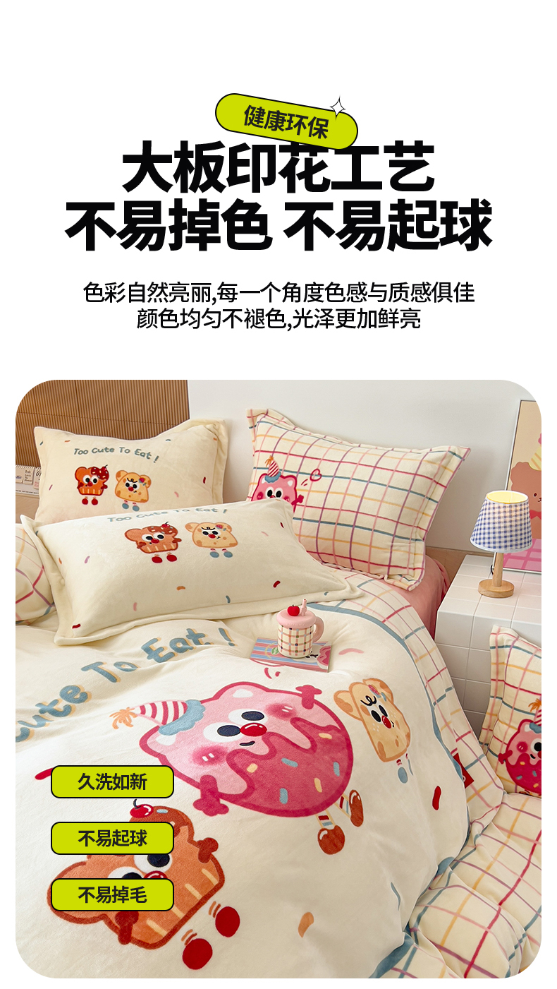 福来临家纺 2025牛奶绒大版卡通四件套 奶油芝士