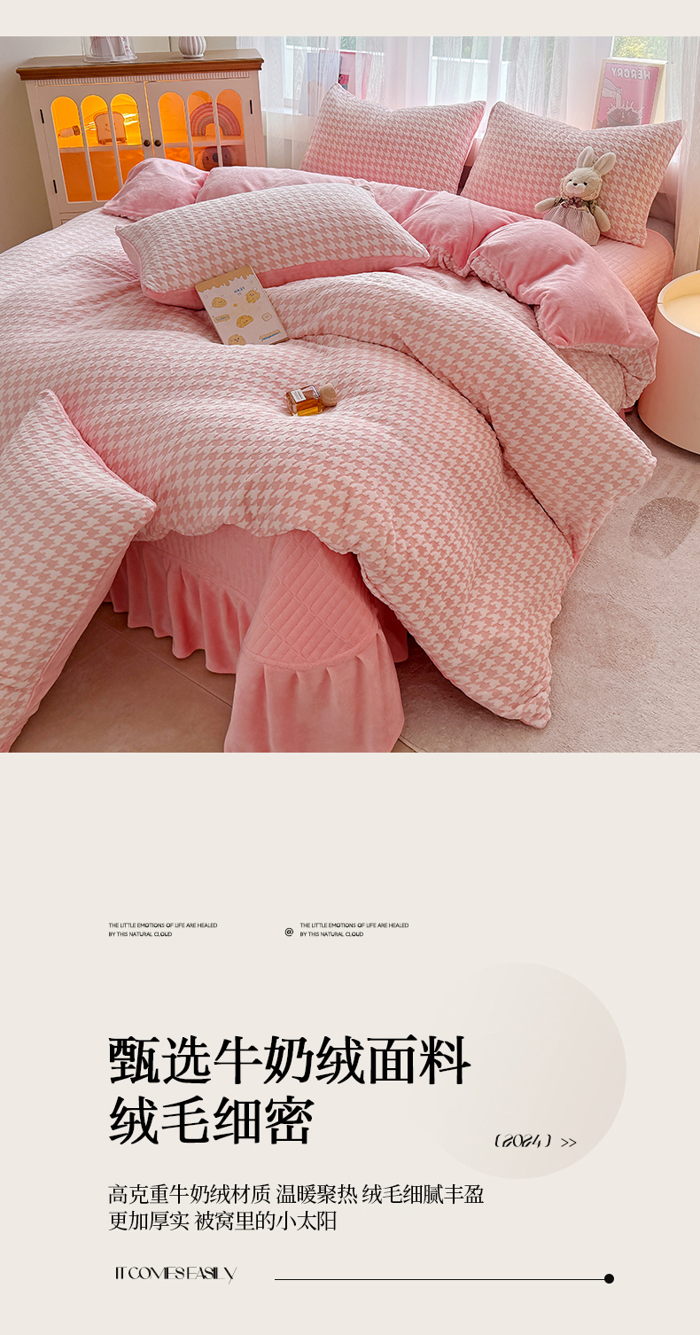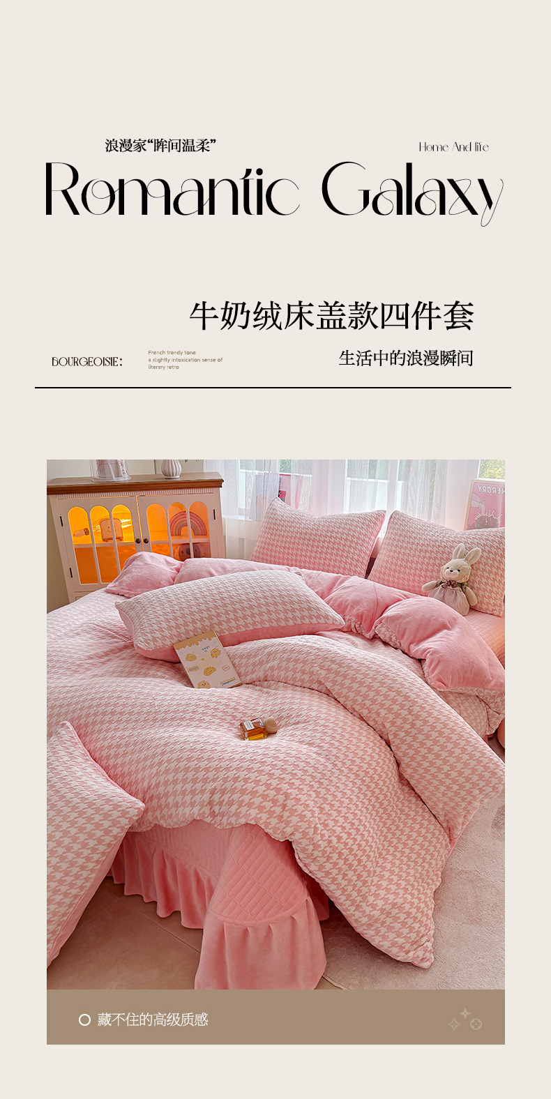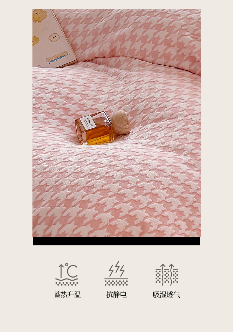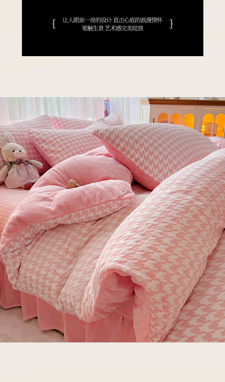 当前位置: 91家纺网 > 商品网购 > 床品套件 > 四件套 > 牛奶绒四件套 > 梵克保罗 2025秋冬新款印花牛奶绒床盖炕垫炕盖四件套-云裳 云裳-千鸟格粉