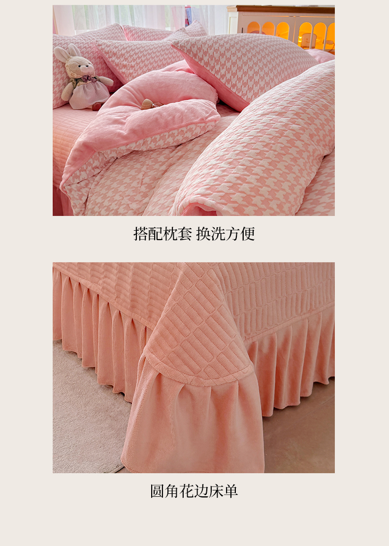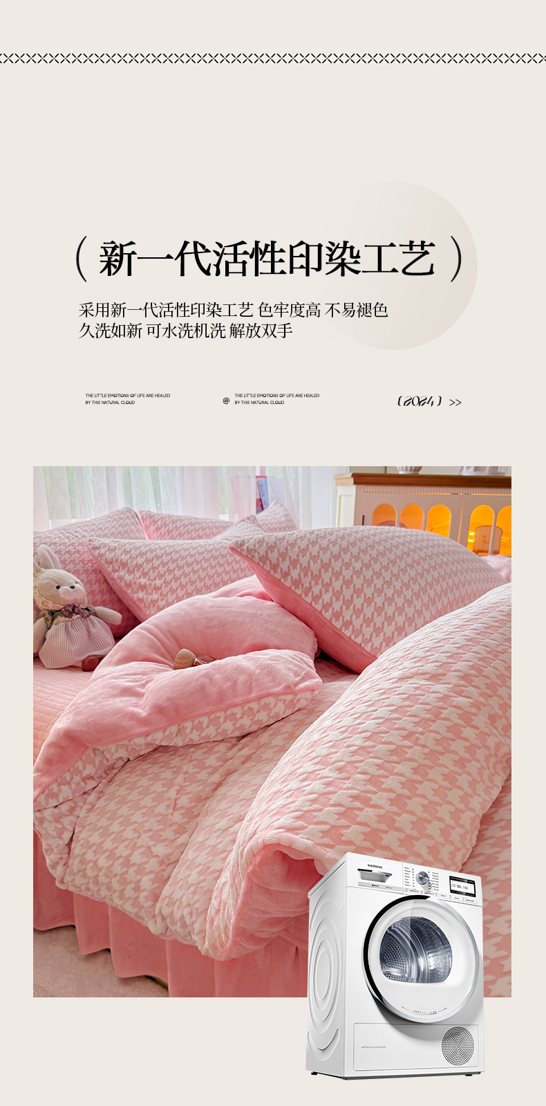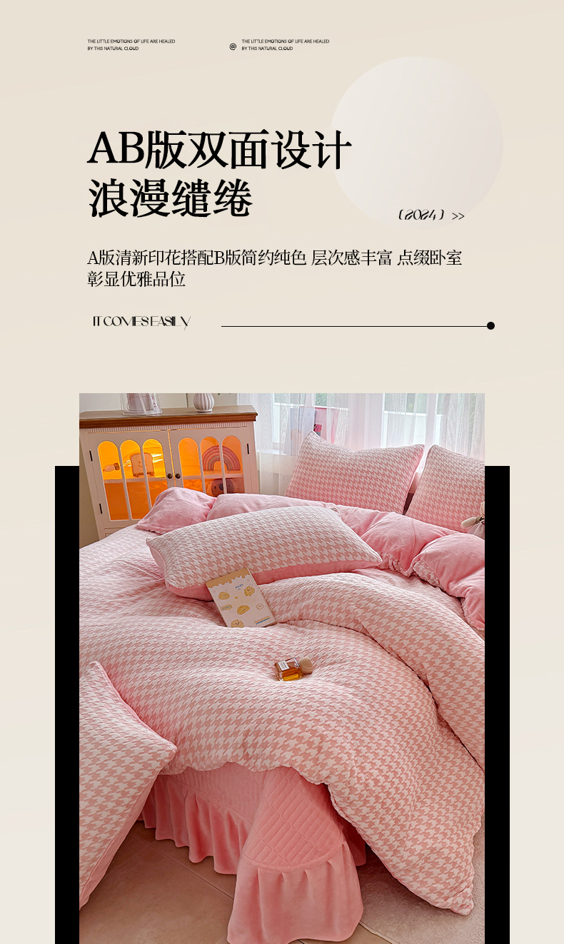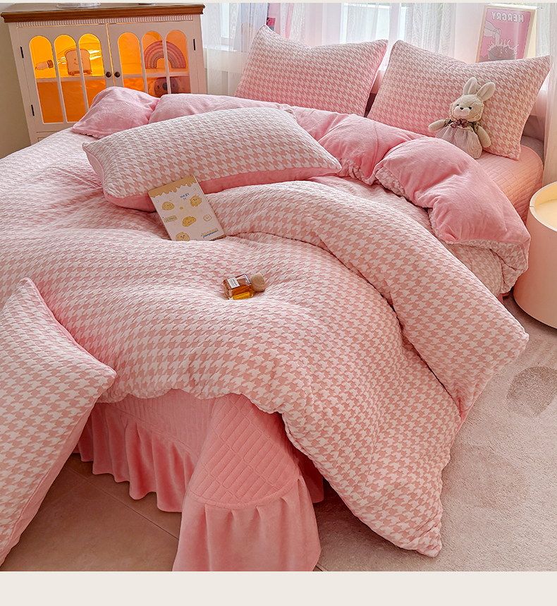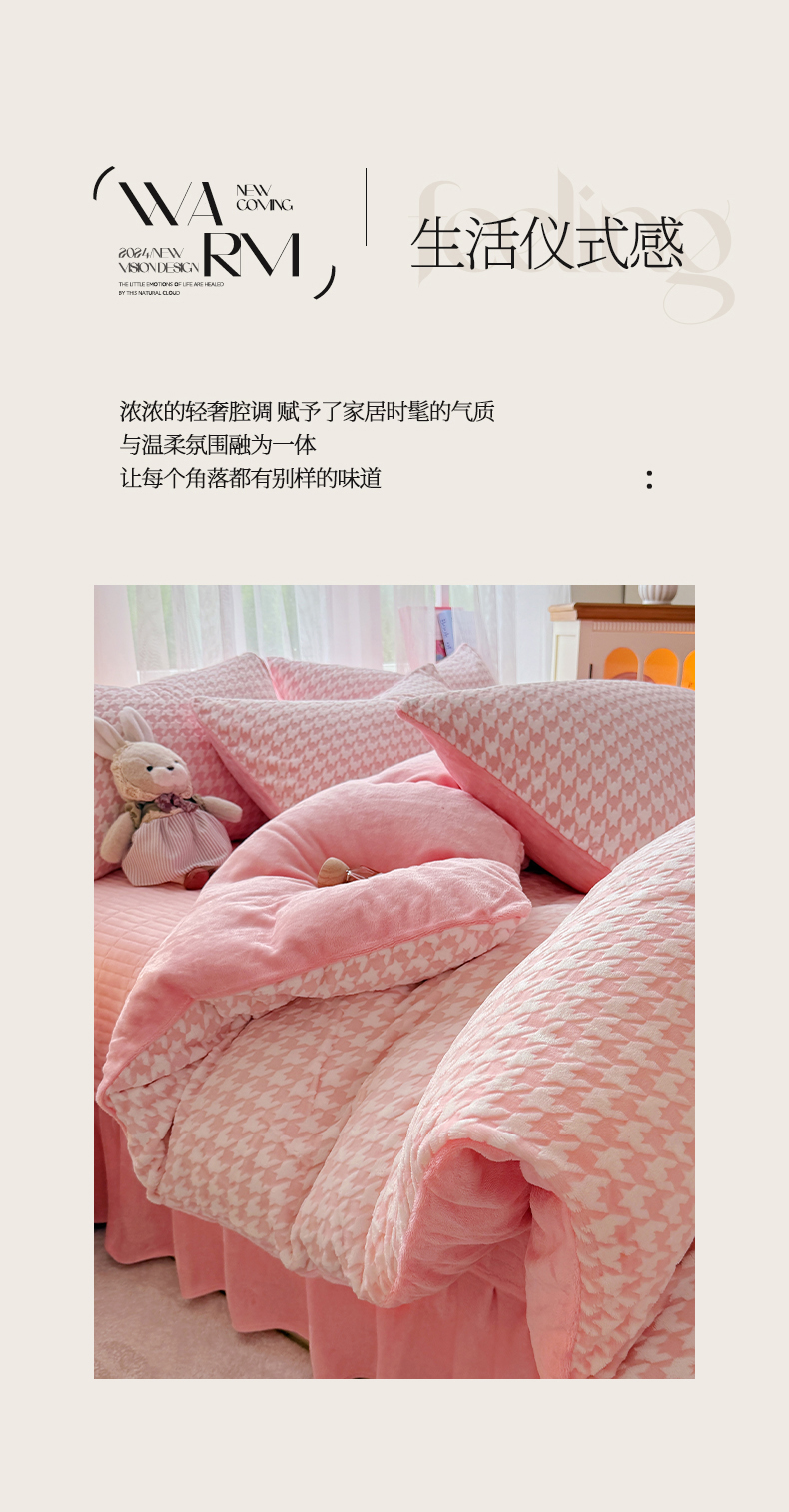 当前位置: 91家纺网 > 商品网购 > 床品套件 > 四件套 > 牛奶绒四件套 > 梵克保罗 2025秋冬新款印花牛奶绒床盖炕垫炕盖四件套-云裳 云裳-千鸟格粉