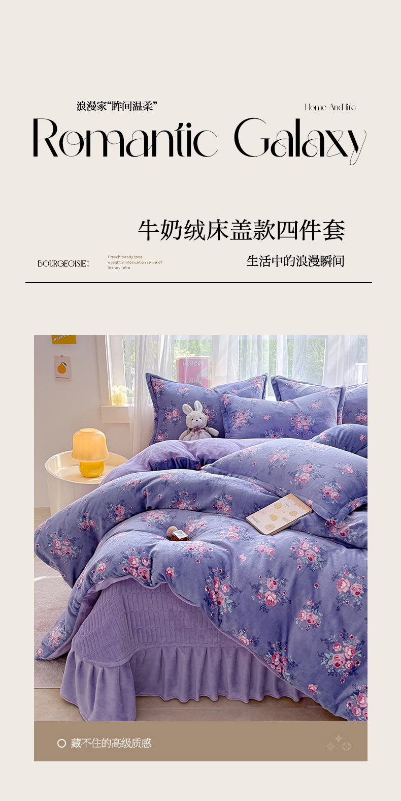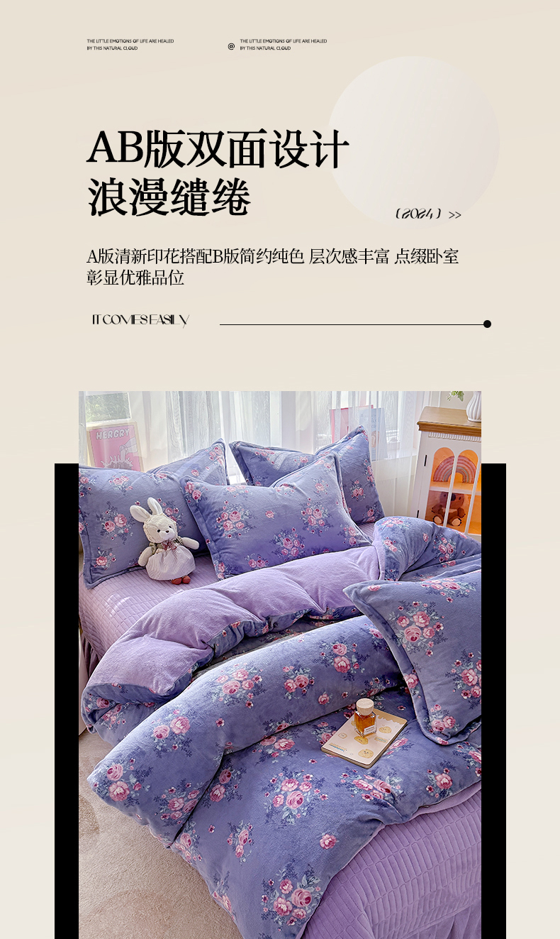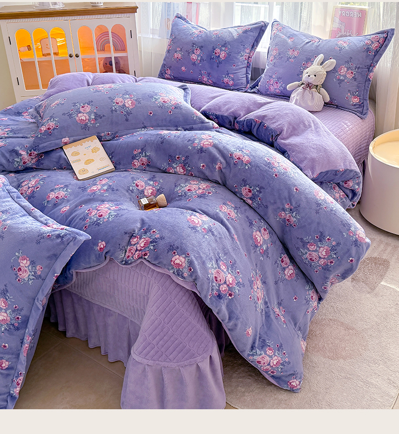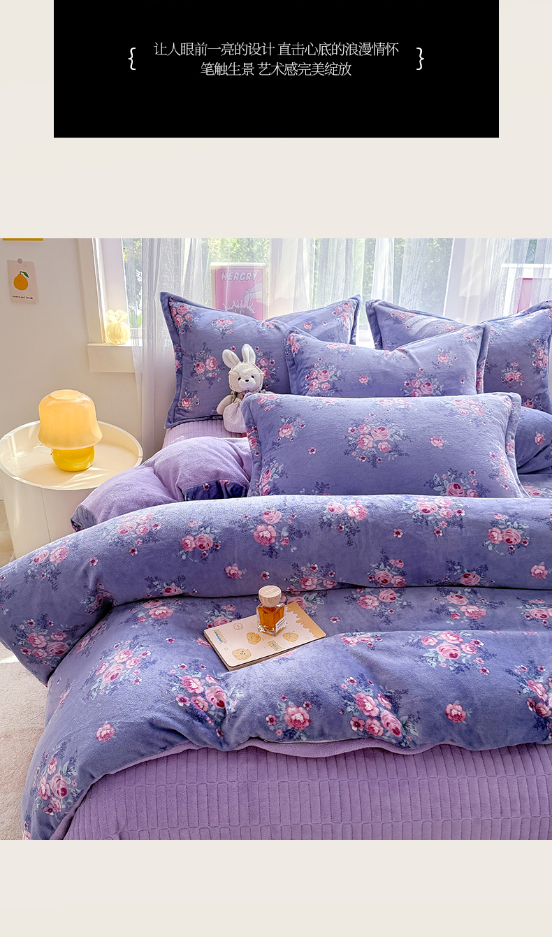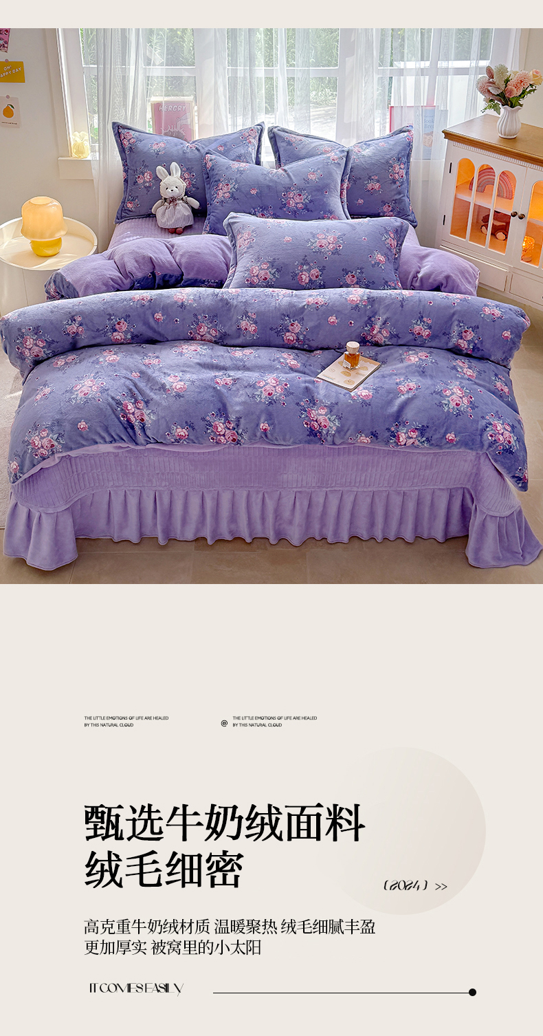 当前位置: 91家纺网 > 商品网购 > 床品套件 > 四件套 > 牛奶绒四件套 > 梵克保罗 2025秋冬新款印花牛奶绒床盖炕垫炕盖四件套-云裳 云裳-紫藤花