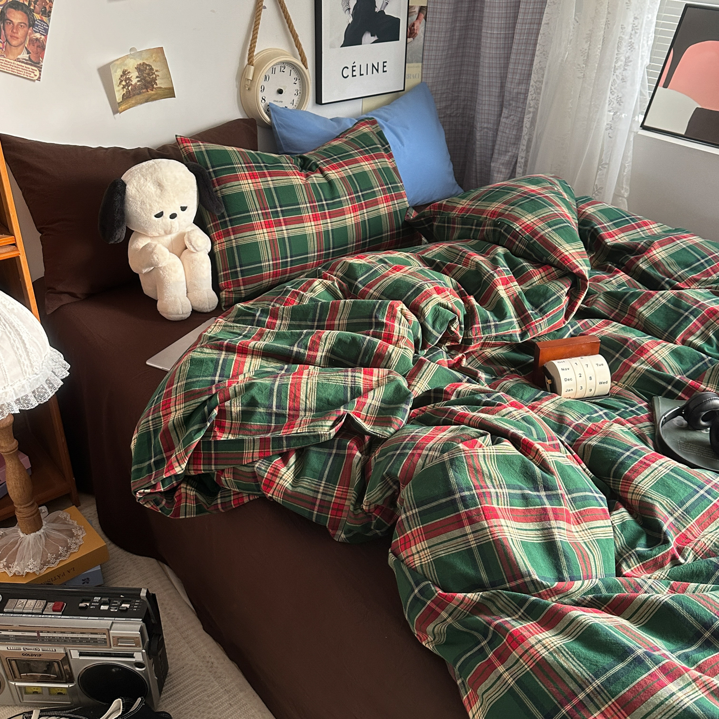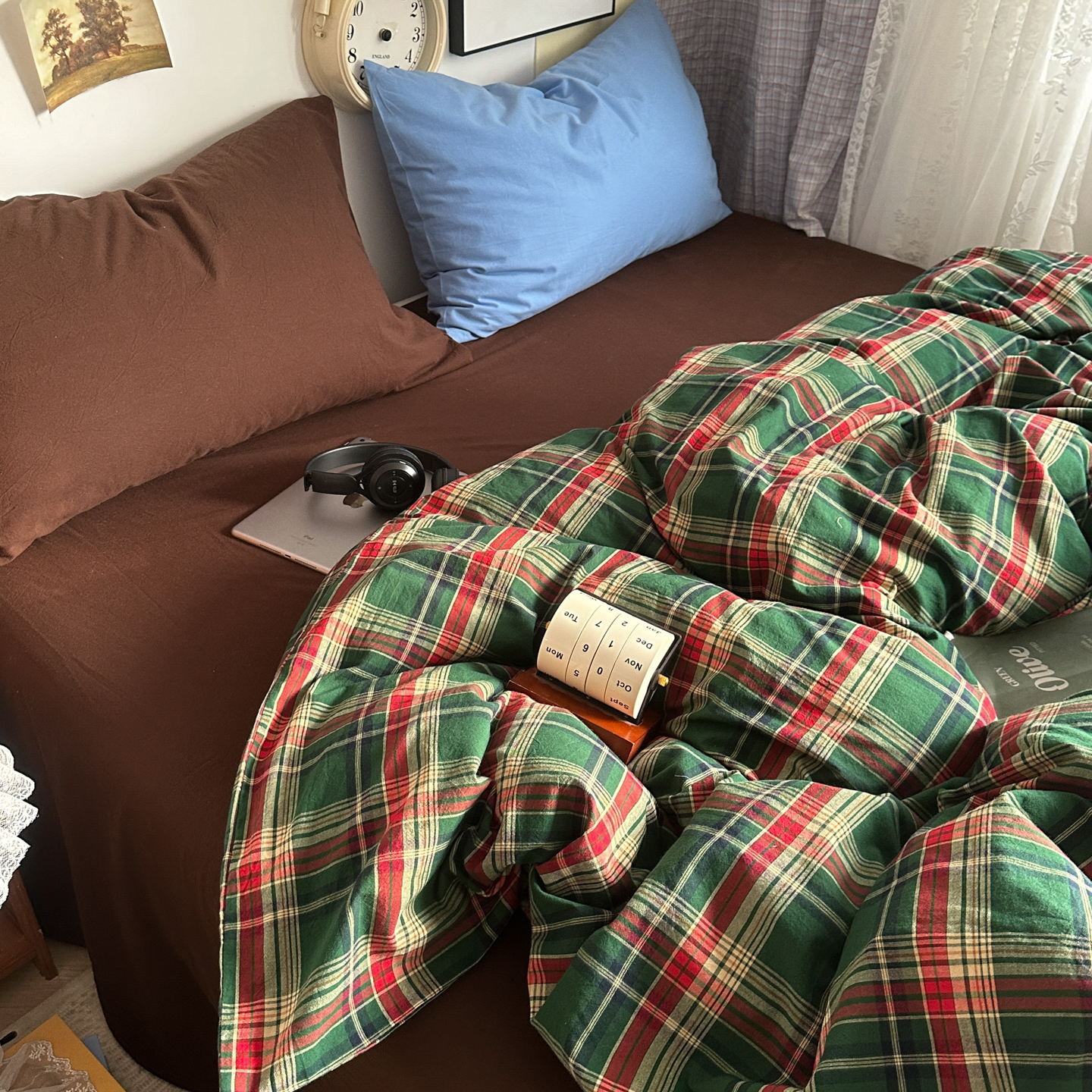 (总)对白 2025新款32s全棉色织水洗棉四件套-苏格兰海岛-咖【提供买家秀】