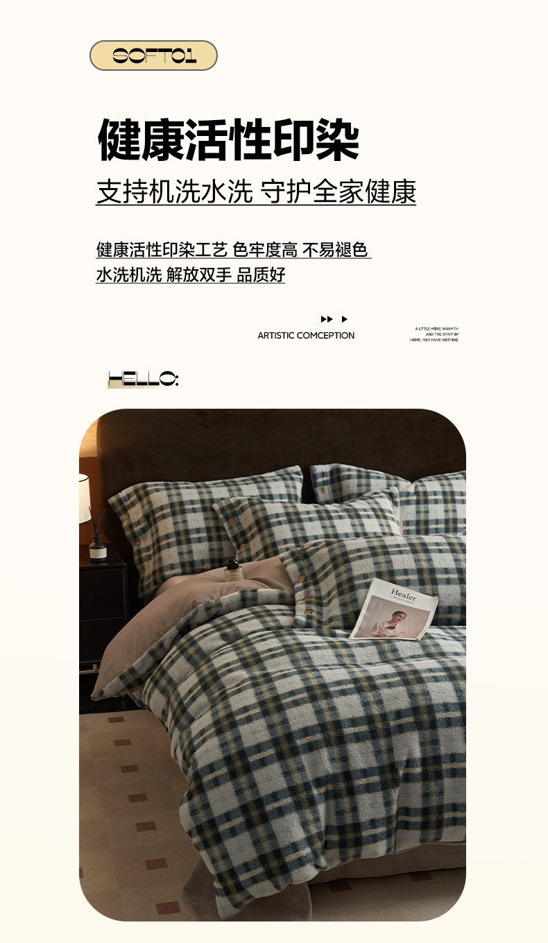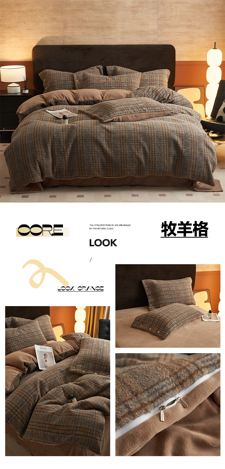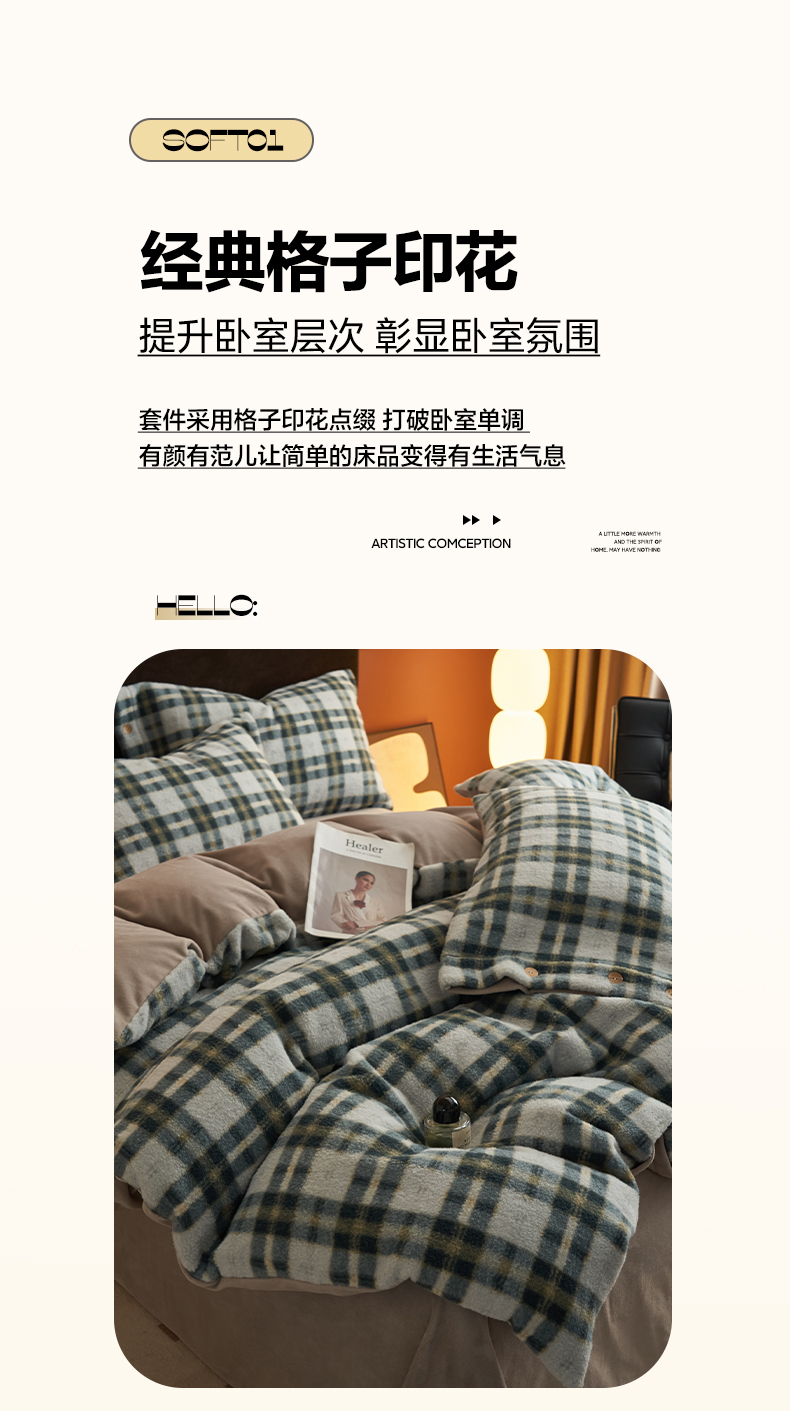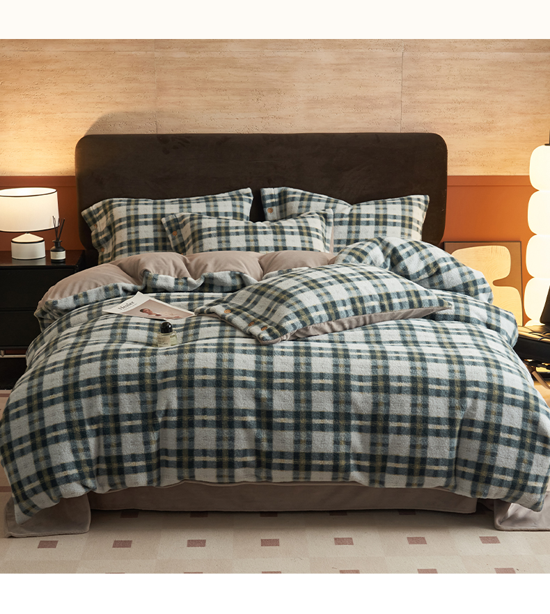 商品名称:早晨家纺 2025新款230g羊驼绒复古格牛奶绒四件套 牧羊格