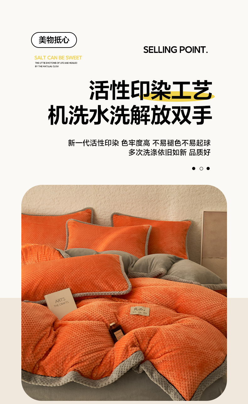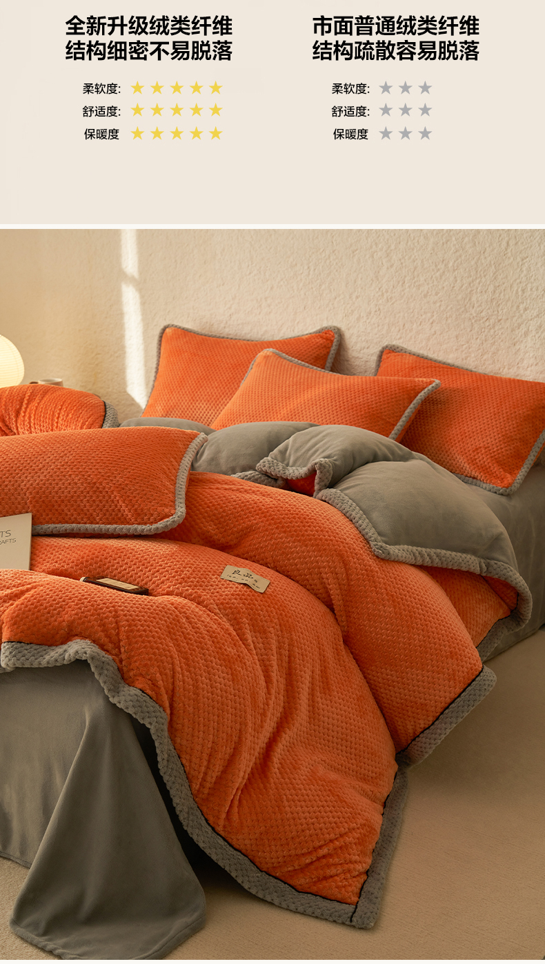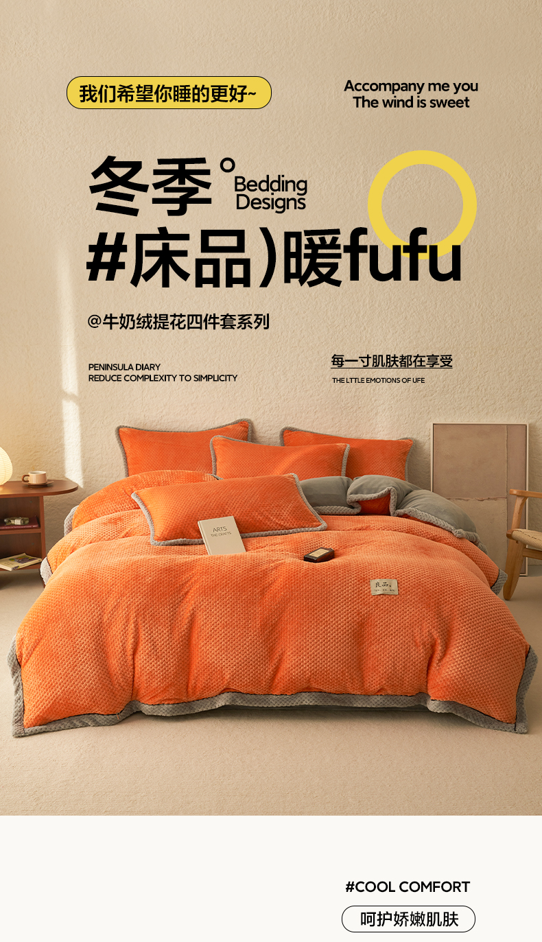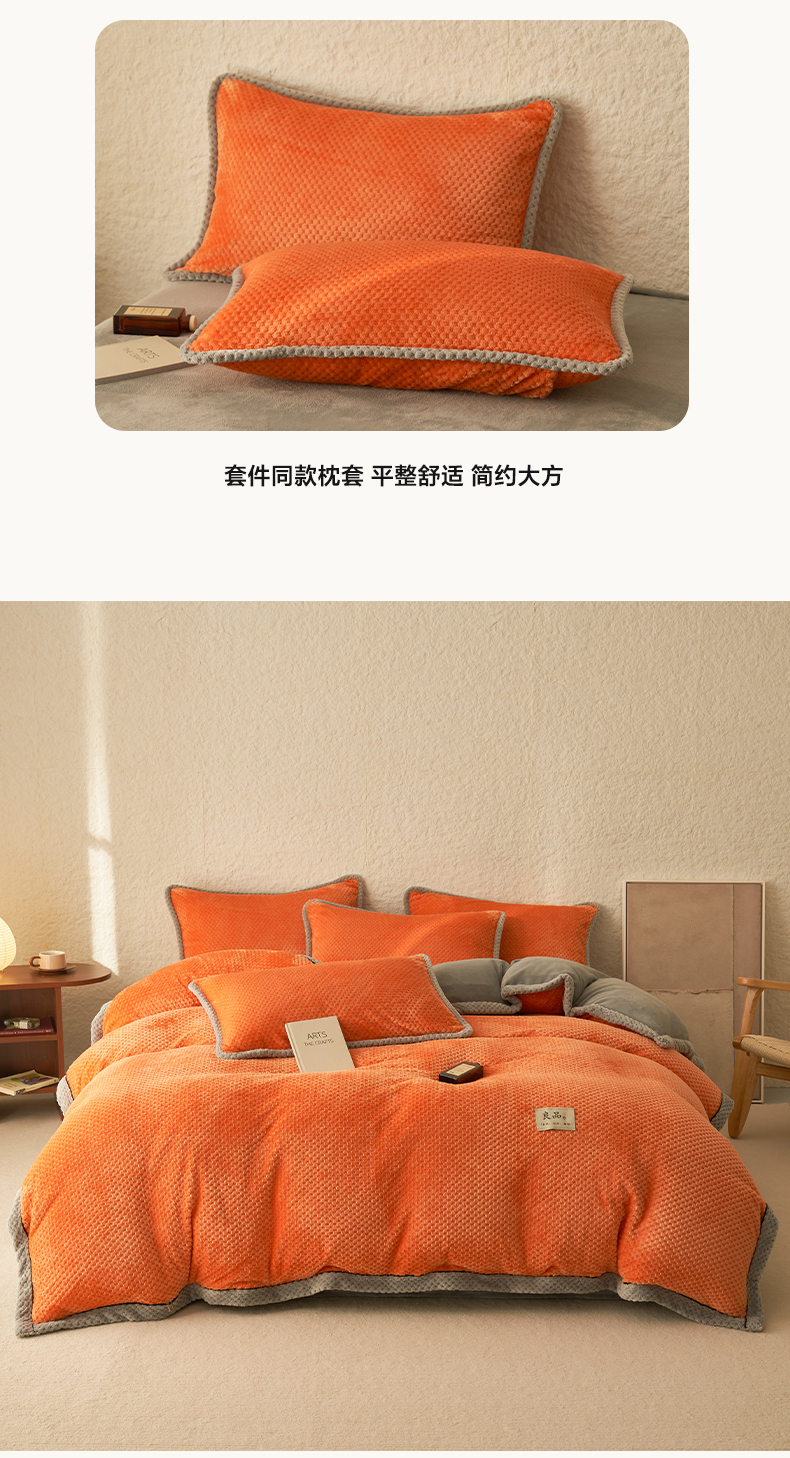 商品名称:早晨家纺 2025新款尚流款牛奶绒提花四件套 尚流-桔黄
