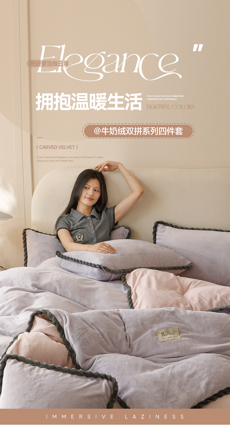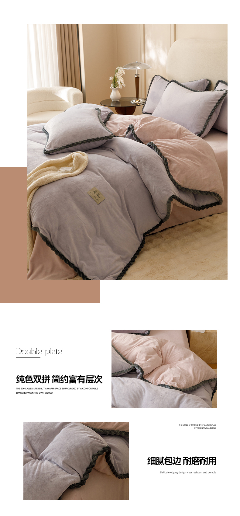 早晨家纺 2025新款牛奶绒双拼四件套 双拼浅紫+玉色