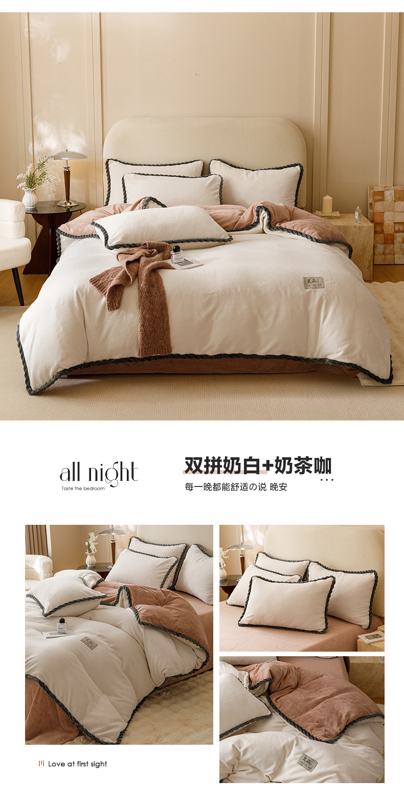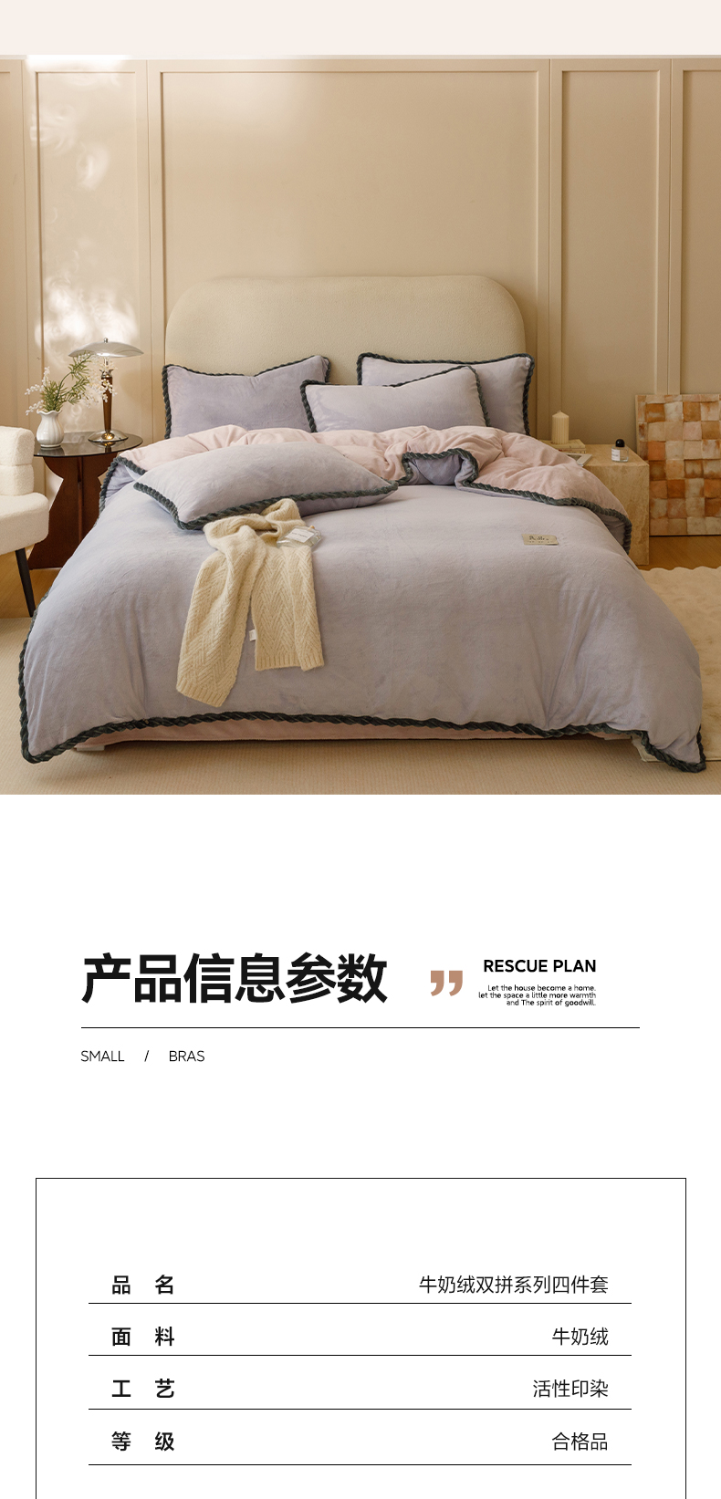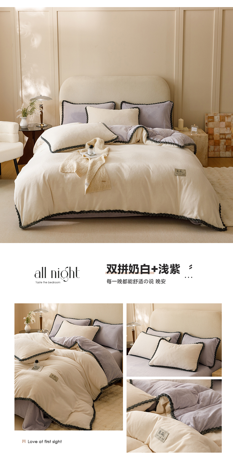 商品名称:早晨家纺 2025新款牛奶绒双拼四件套 双拼浅紫+玉色