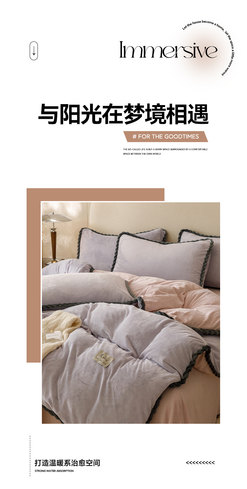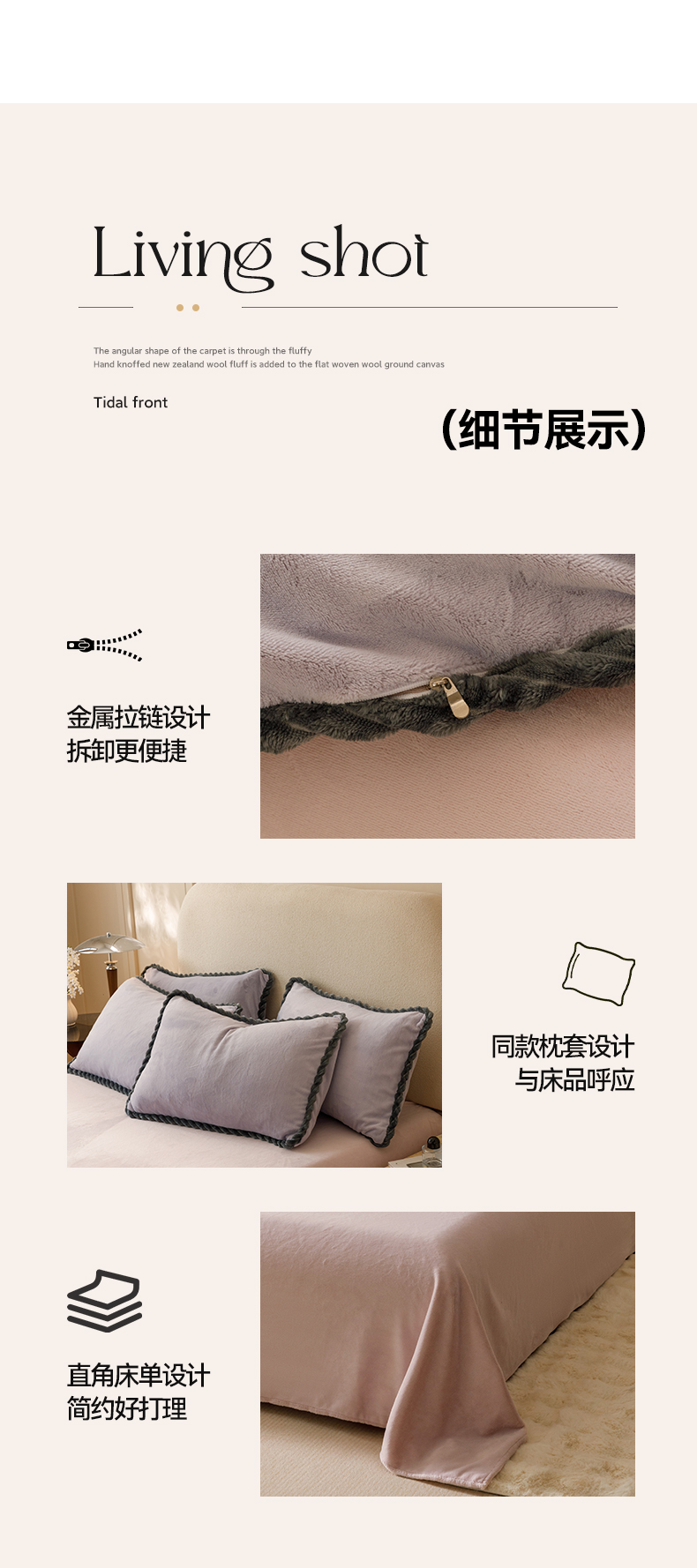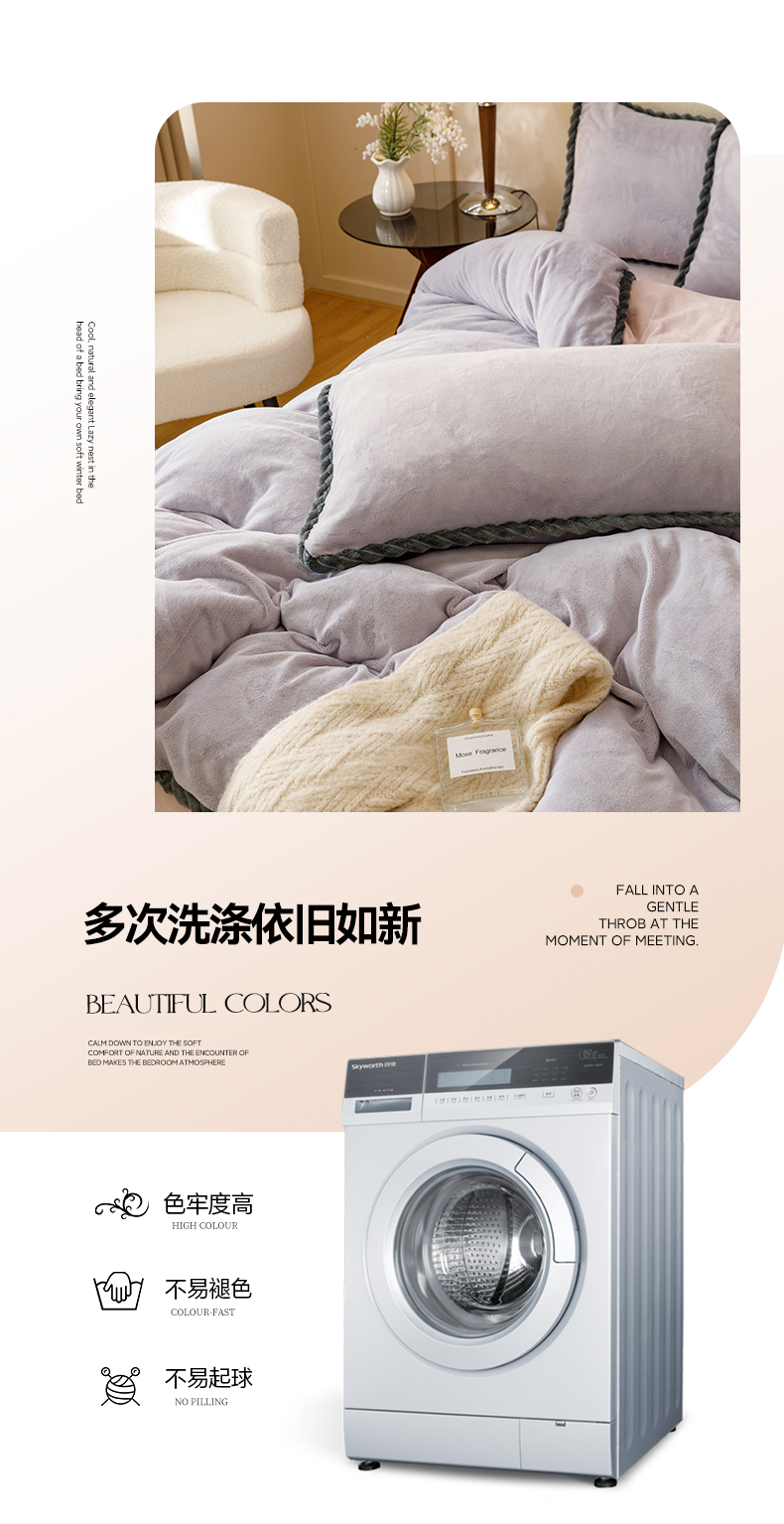 商品名称:早晨家纺 2025新款牛奶绒双拼四件套 双拼浅紫+玉色