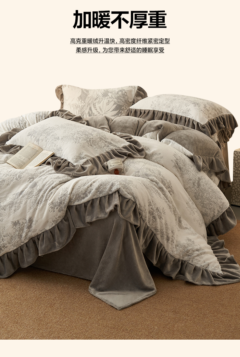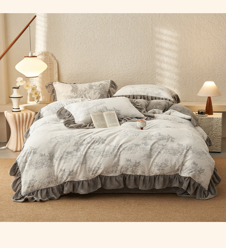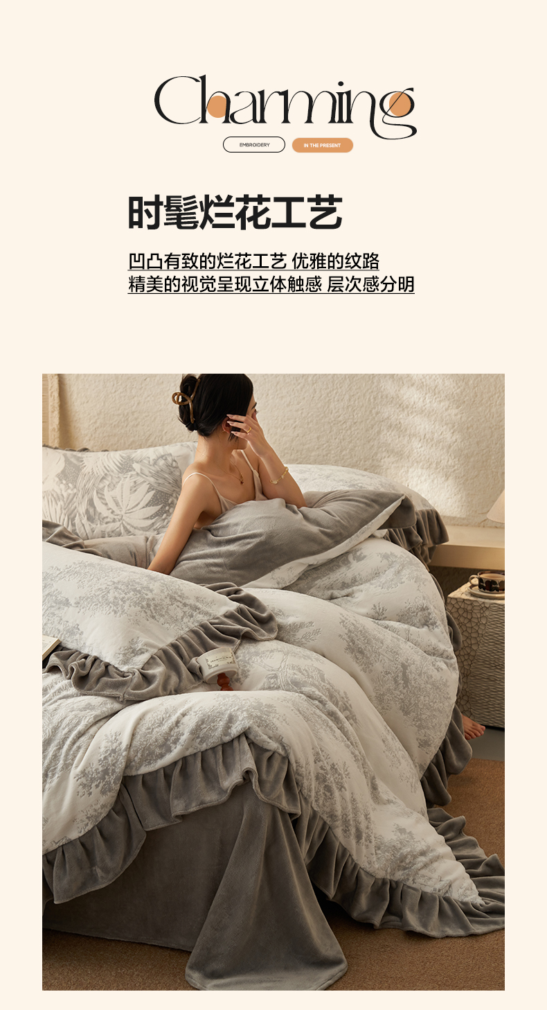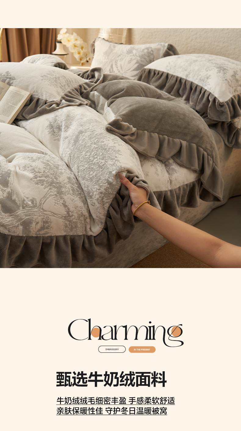 早晨家纺 2025新款高克重牛奶绒烂花四件套 林影素韵