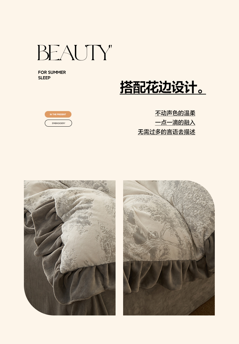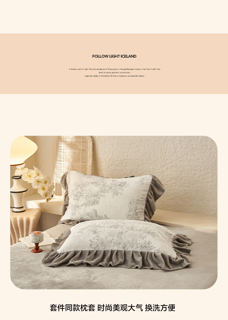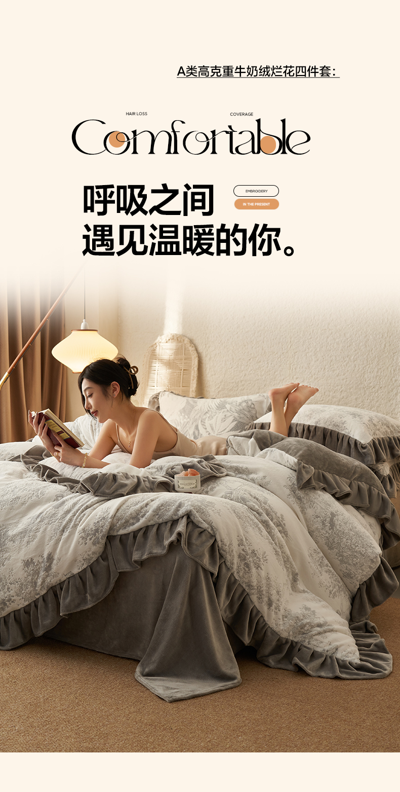 早晨家纺 2025新款高克重牛奶绒烂花四件套 林影素韵