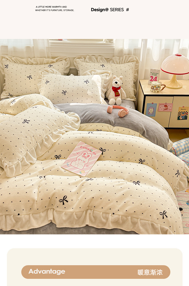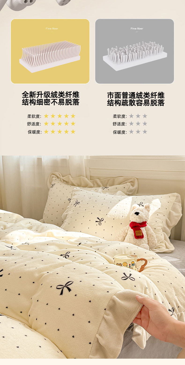 (总)米莱家纺 2025新款兔毛绒花边牛奶绒四件套,彩色圆点,繁花,粉黛,蝴蝶结,咖圆点,可爱兔,可爱熊,蔷薇