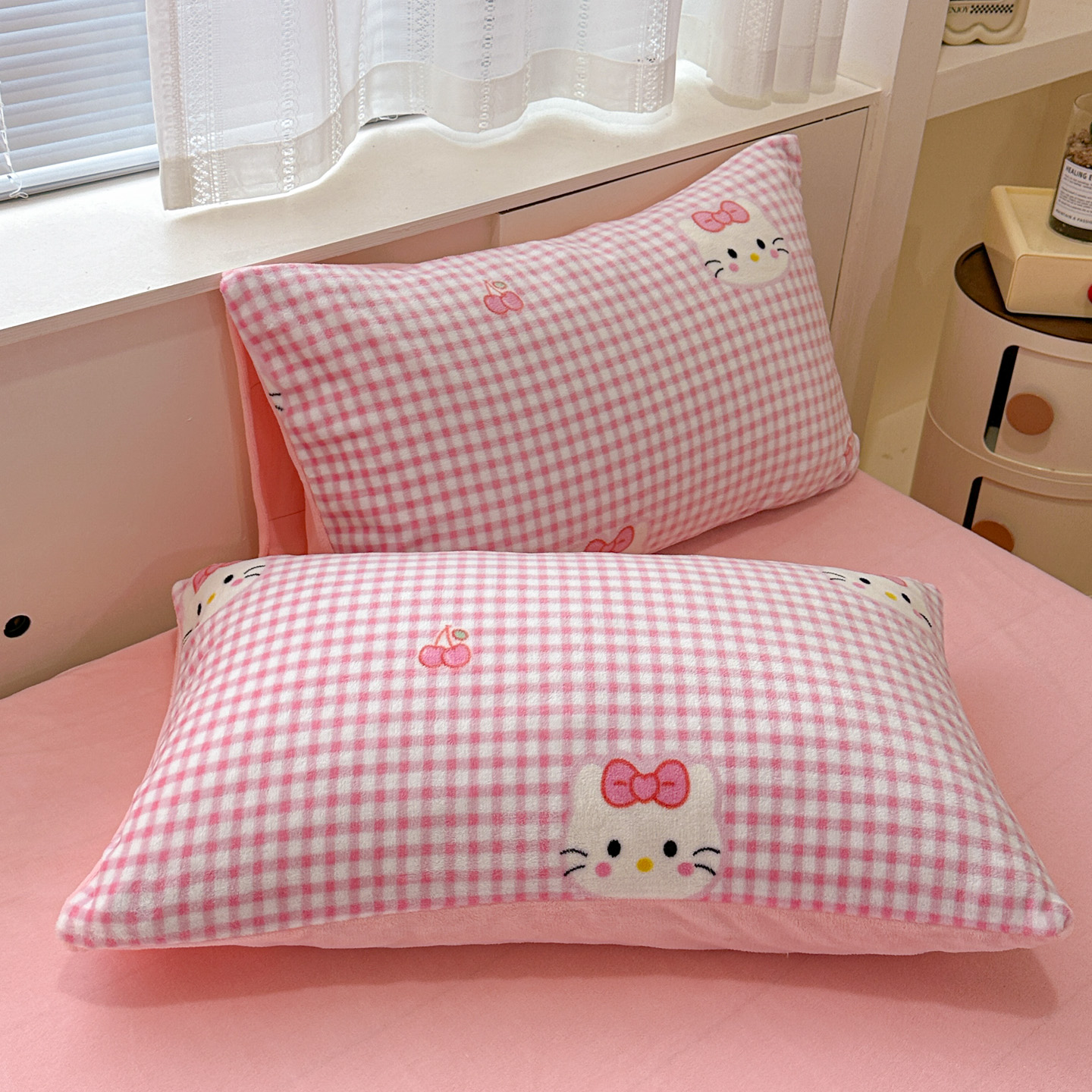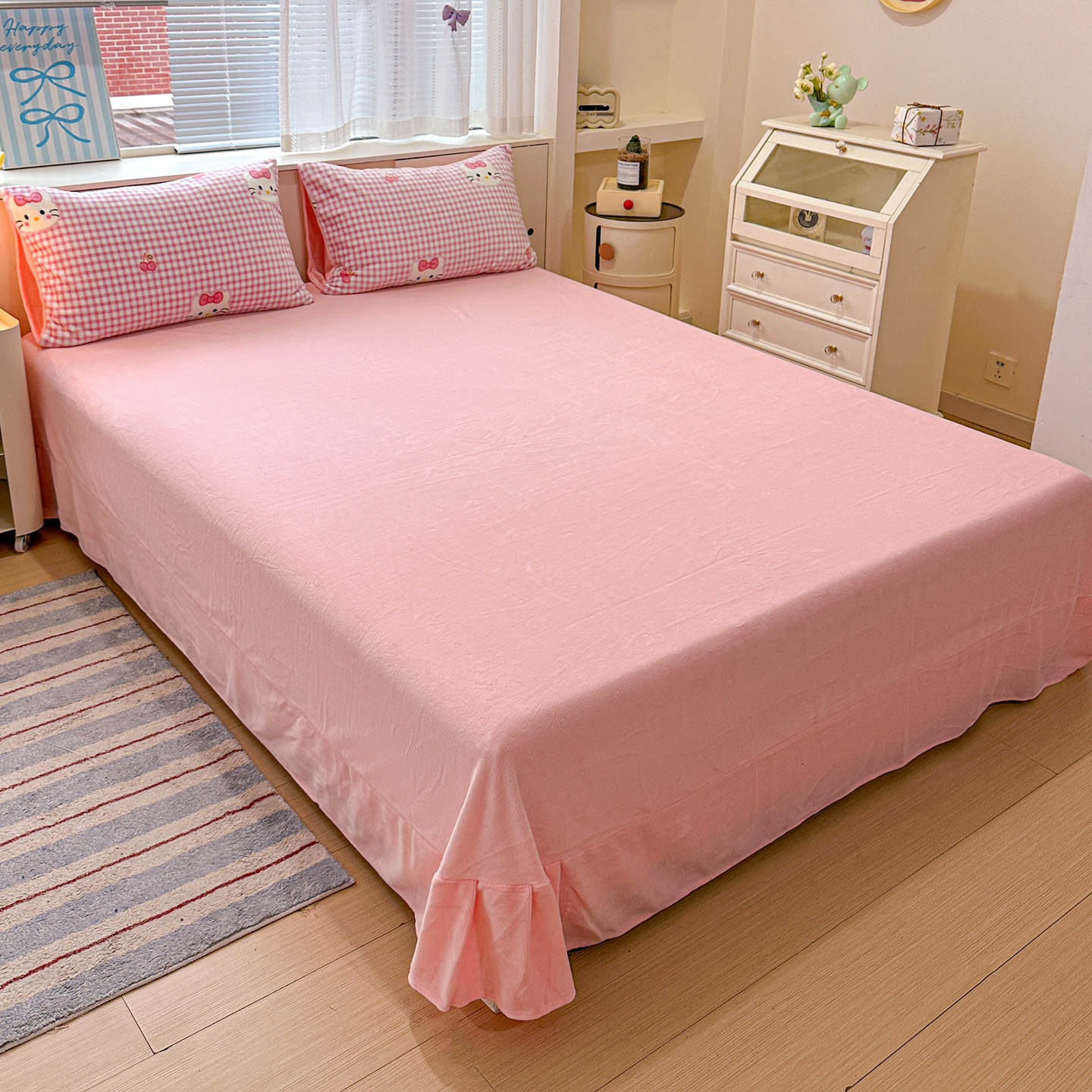 梦莱斯 2025新款加厚保暖双面牛奶绒四件套 粉色猫