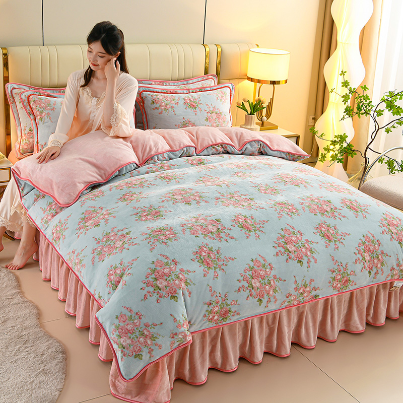 沐妍家纺 2024新款7斤牛奶法莱绒金貂绒印花四件套 爱的花海,爱的花海