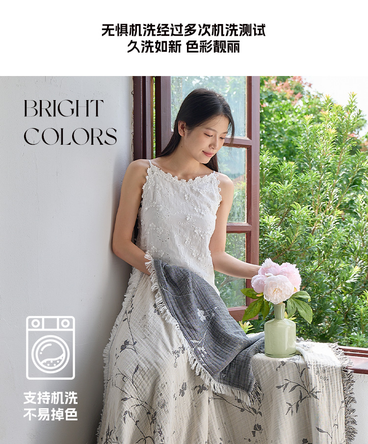 (总)沐瑟家纺 2025新款亲肤柔软全棉纱布中国风盖毯毯子,百花集,翠影鸟-蓝色,花想容,花鸟韵,蝶语-绿,蝶语-淡粉,花蝶-米,比翼鸟,墨葵,绮梦花