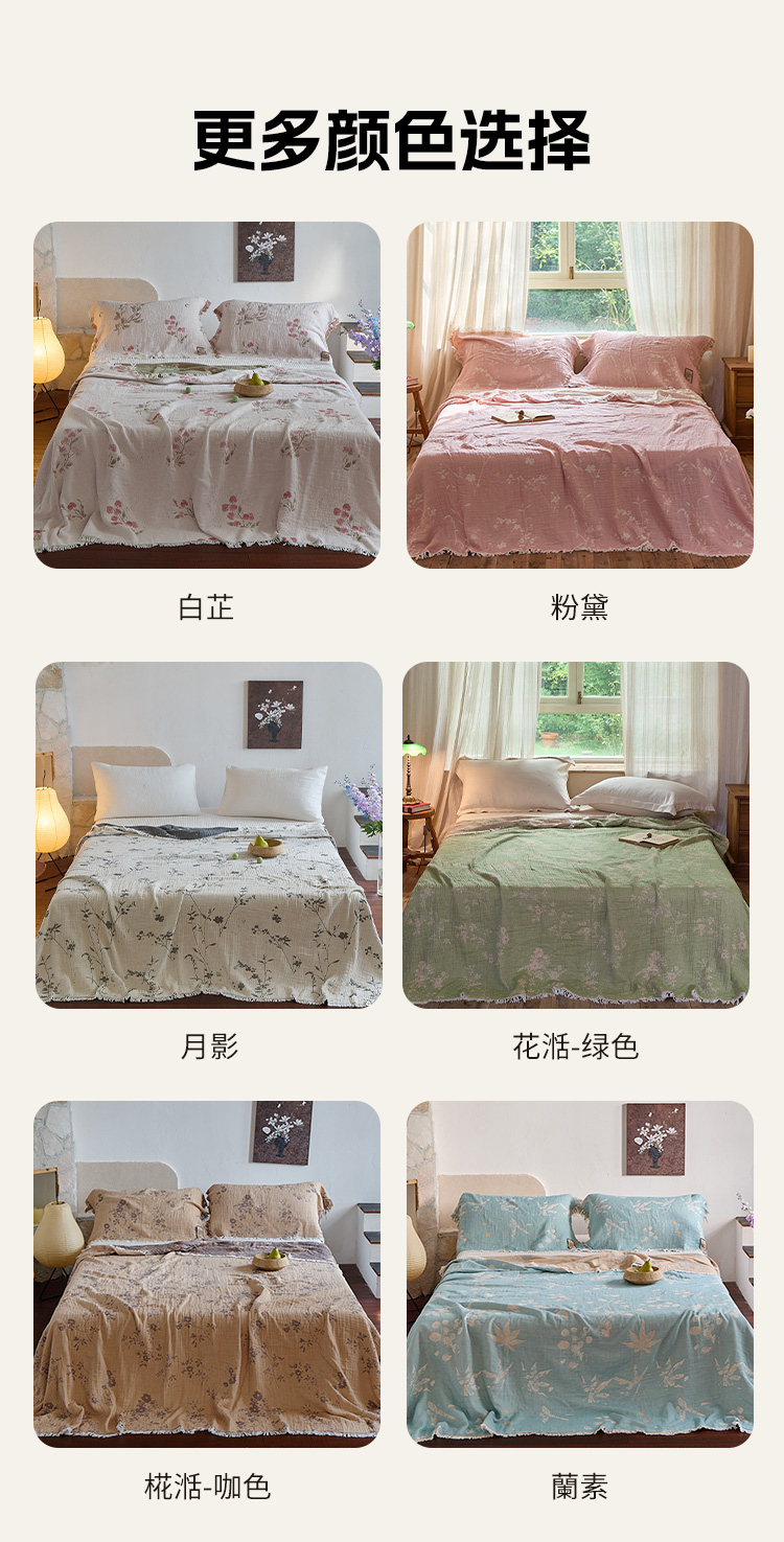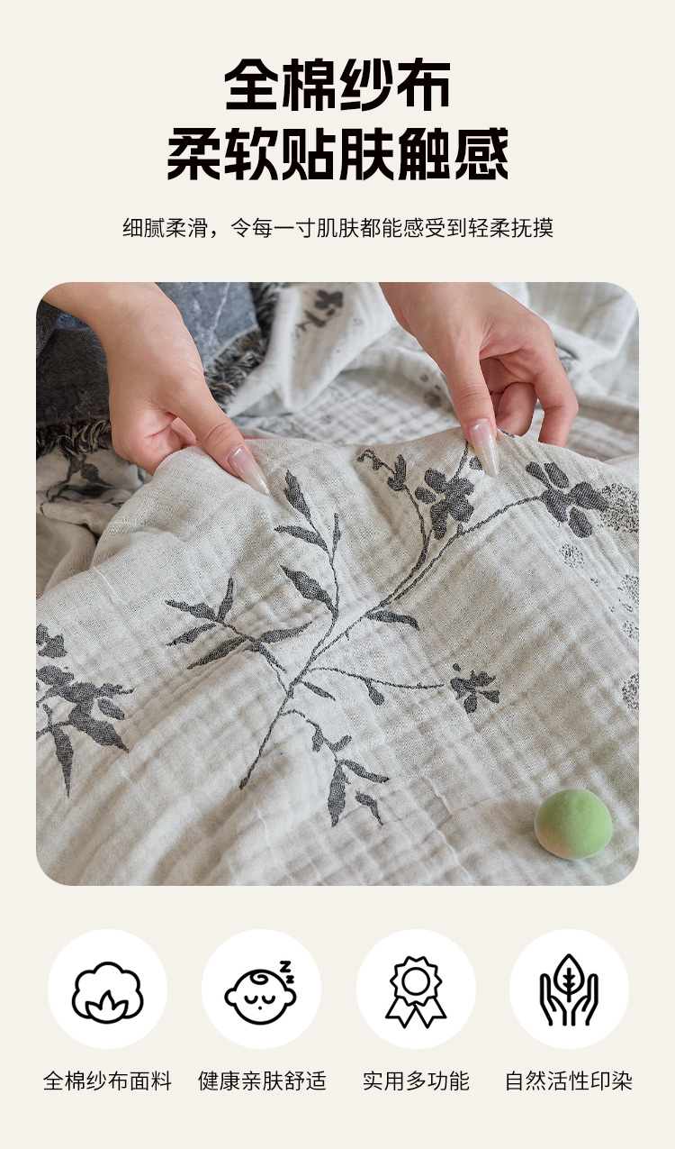(总)沐瑟家纺 2025新款亲肤柔软全棉纱布中国风盖毯毯子,百花集,翠影鸟-蓝色,花想容,花鸟韵,蝶语-绿,蝶语-淡粉,花蝶-米,比翼鸟,墨葵,绮梦花