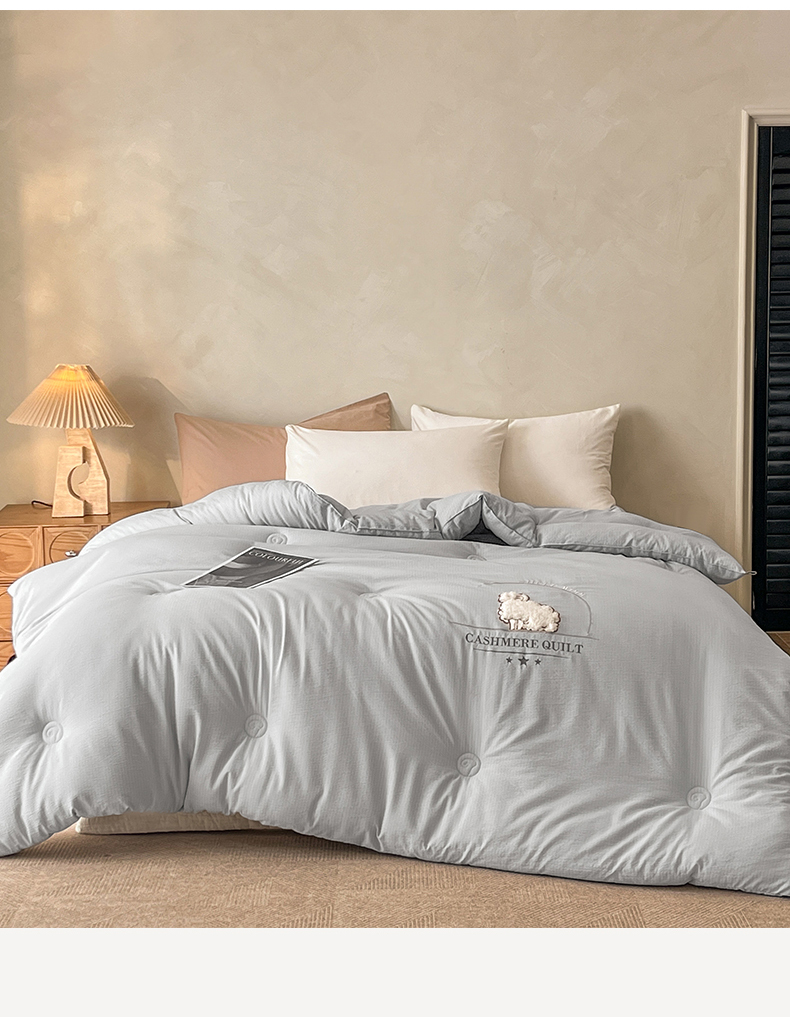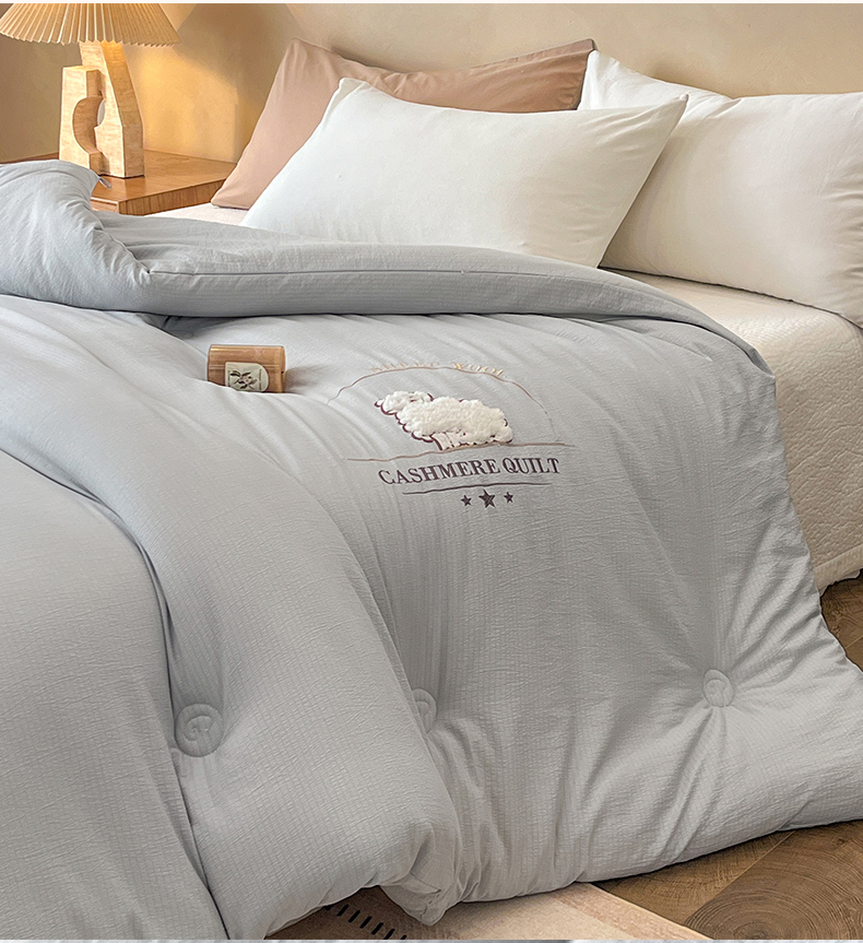 • 91家纺网 家纺一手货源 找家纺 梵克保罗 2025新款冬日暖阳绣花羊毛秋冬被冬被跨境外贸 绣花-浅灰