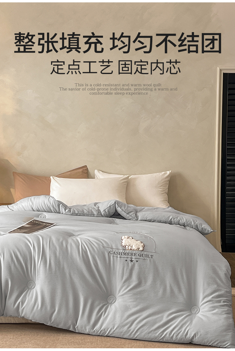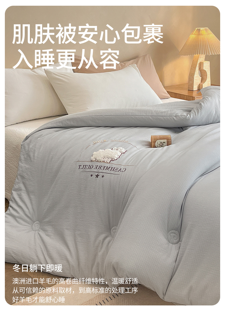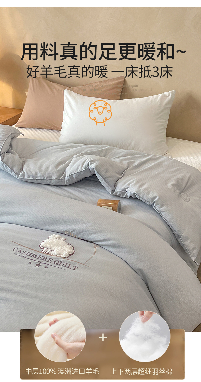 梵克保罗 2025新款冬日暖阳绣花羊毛秋冬被冬被跨境外贸 绣花-浅灰