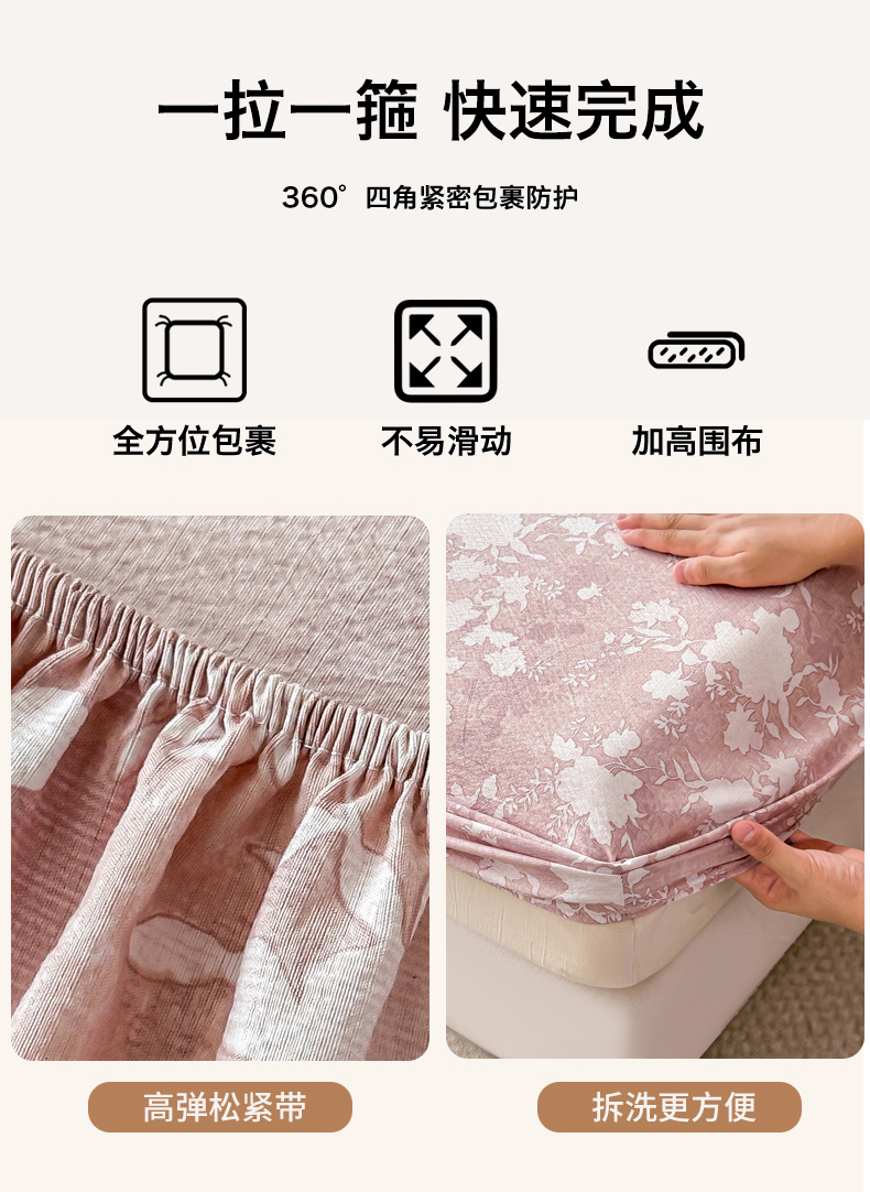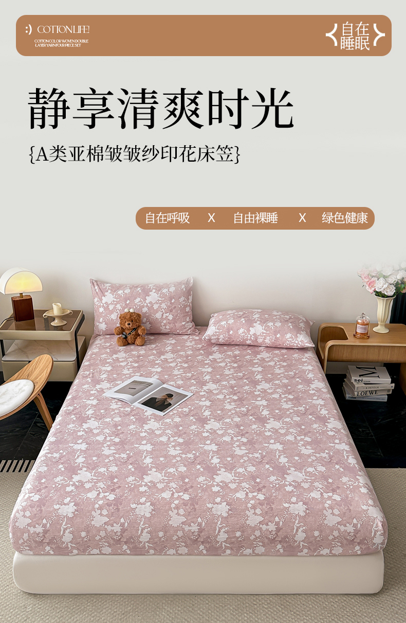 (总)梦嘉居 2025新款加厚亚麻皱皱纱床笠单床笠枕套床笠单品,蝶恋花,繁花梦,风铃草,扶桑花,花香韵,花之语,兰亭序,水云间,云水谣