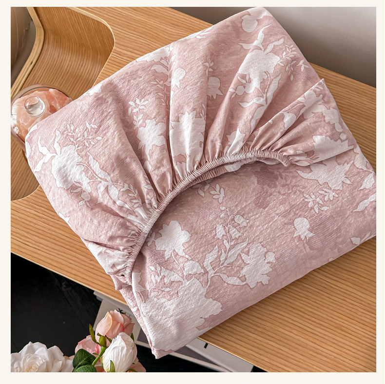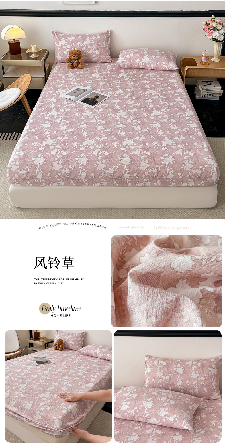 梦嘉居 2025新款加厚亚麻皱皱纱床笠单床笠枕套床笠单品 风铃草