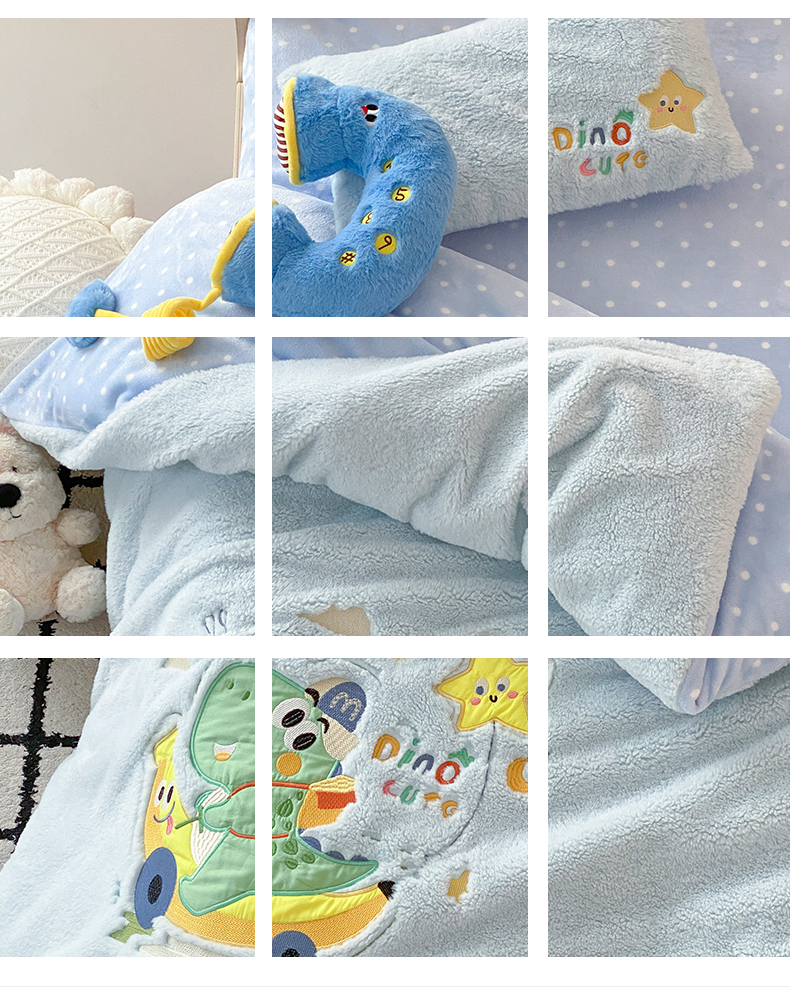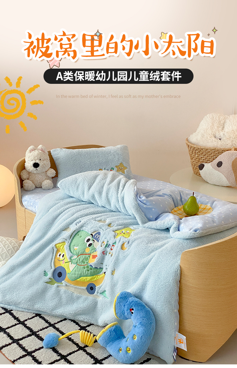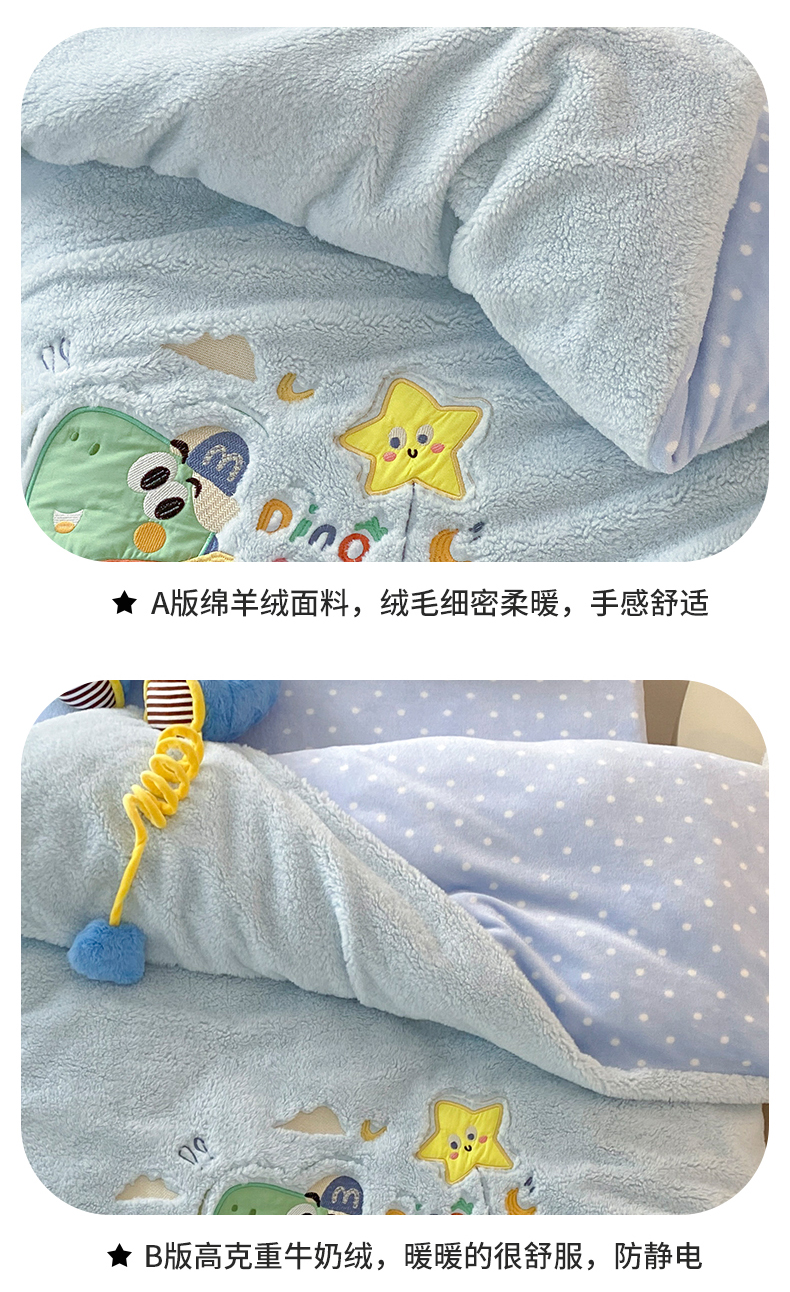 (总)宝贝优选 2025新款A类卡通数码印幼儿园儿童牛奶绒套件,风靡象宝宝,恐龙小司机,魔法口袋,木马公主,胖墩国宝,生日挖掘机,太空雪人