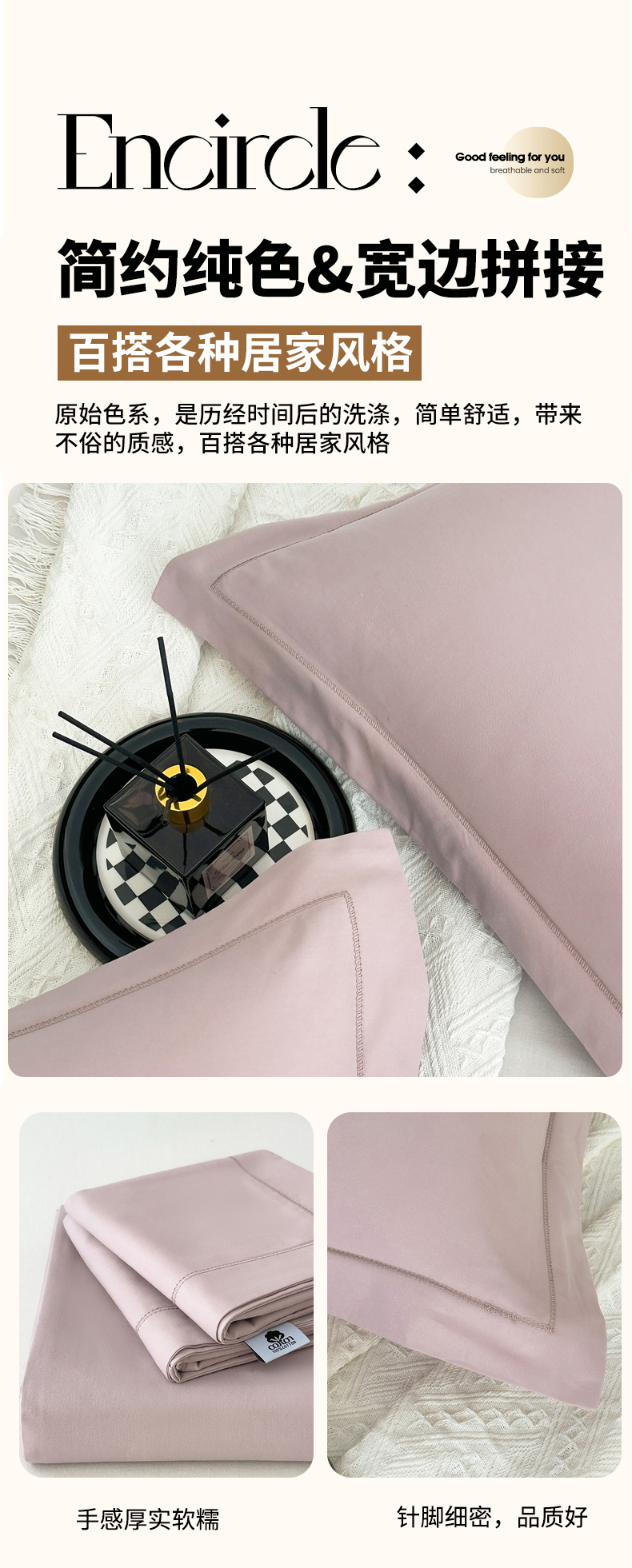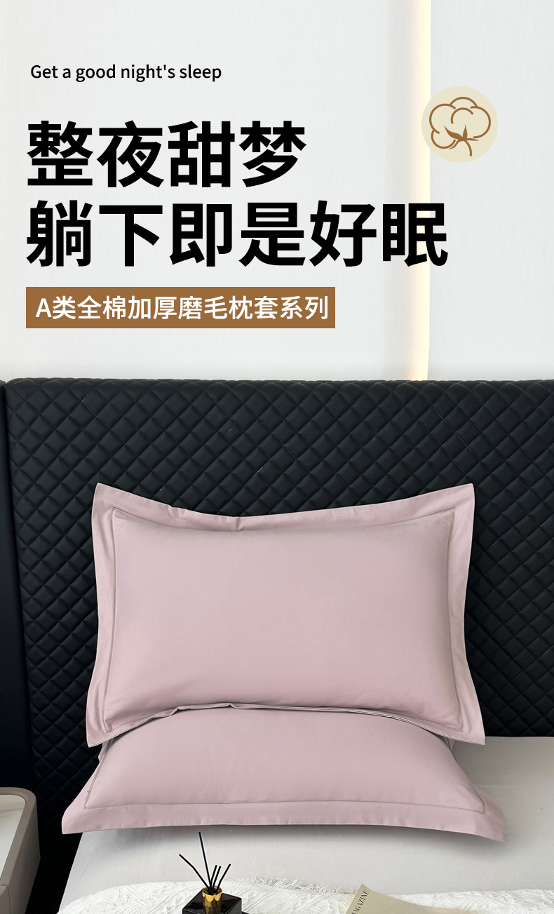商品名称:宝时兰 2025新款加厚100%全棉枕套单品磨毛纯棉单件(带一字绣工艺) 烟粉紫