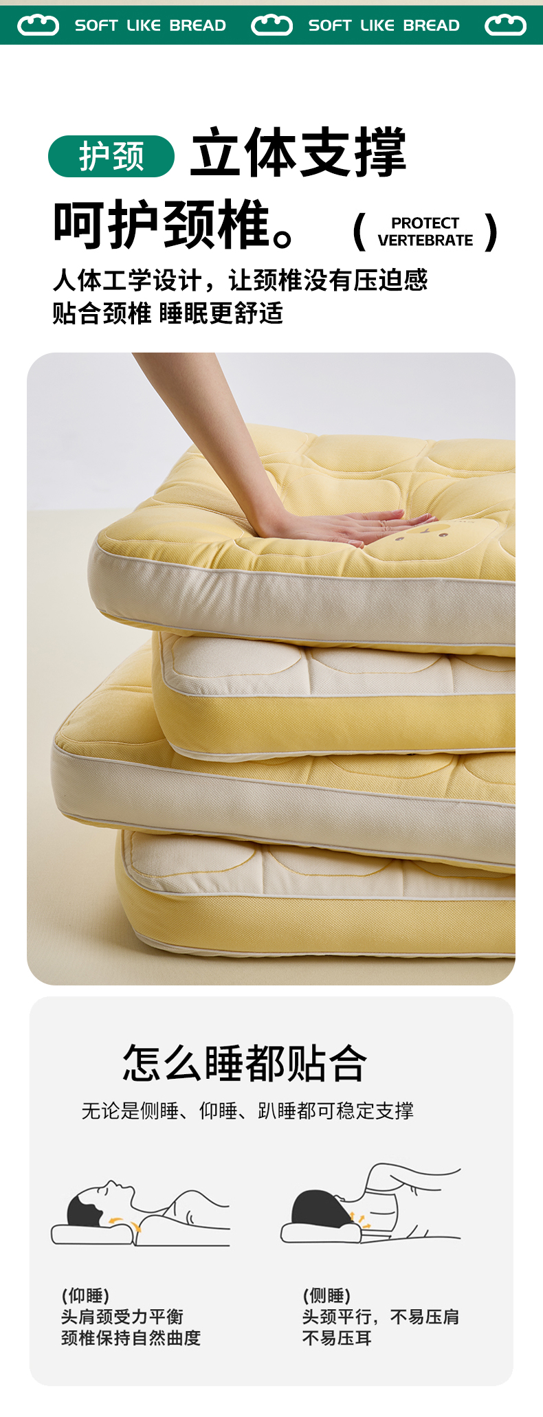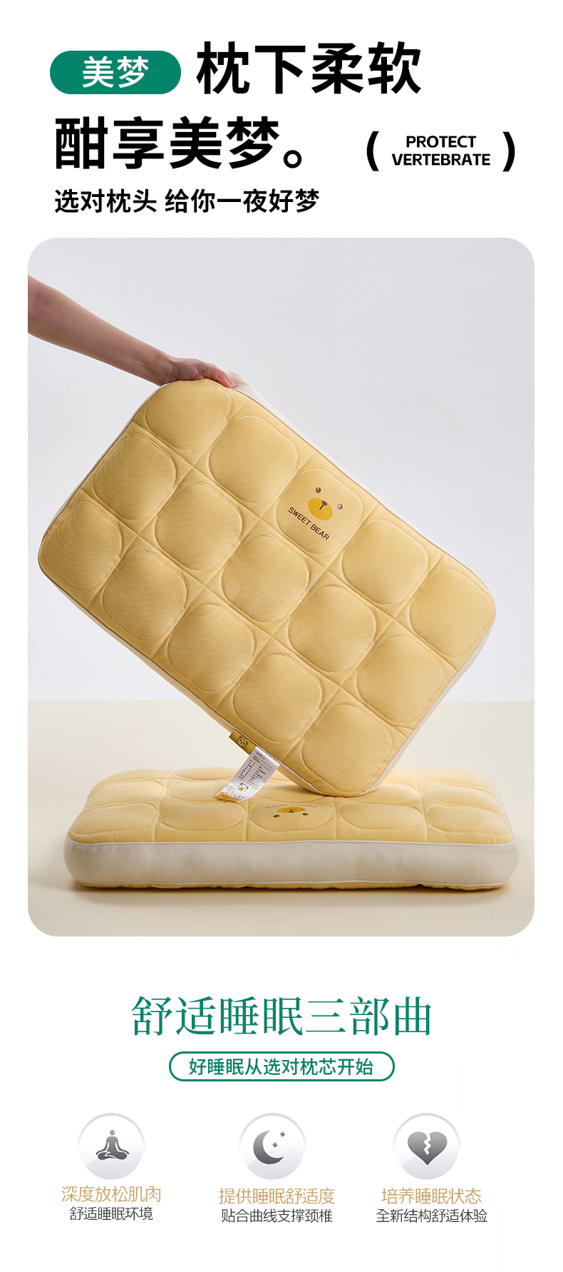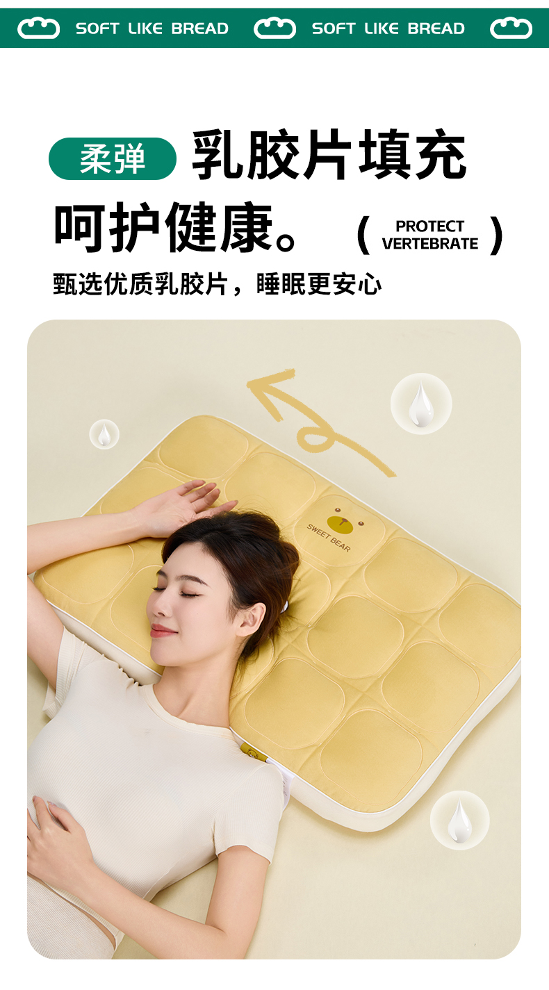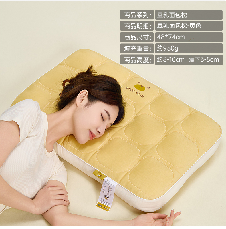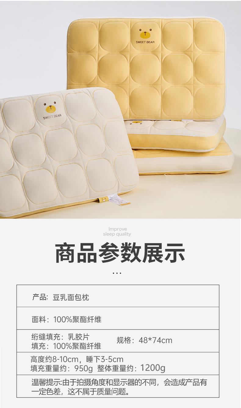 商品名称:昕科 2025新款小熊豆乳面包枕-乳胶片定型枕头卡通萌趣成人立体枕芯 豆乳面包枕-黄色/一对装