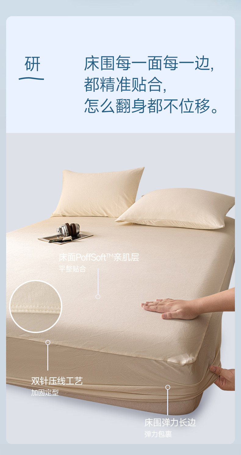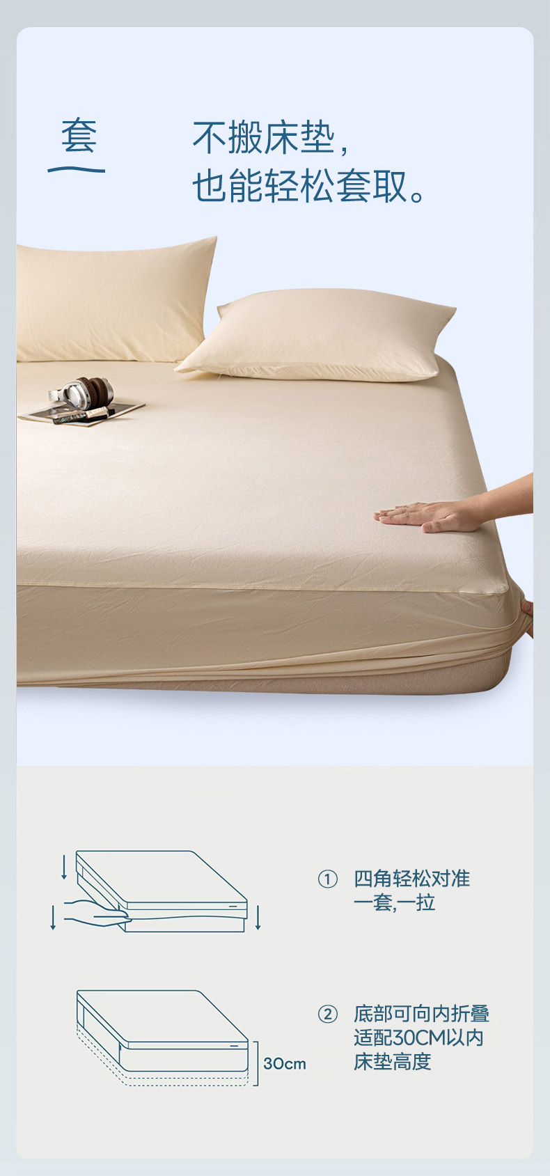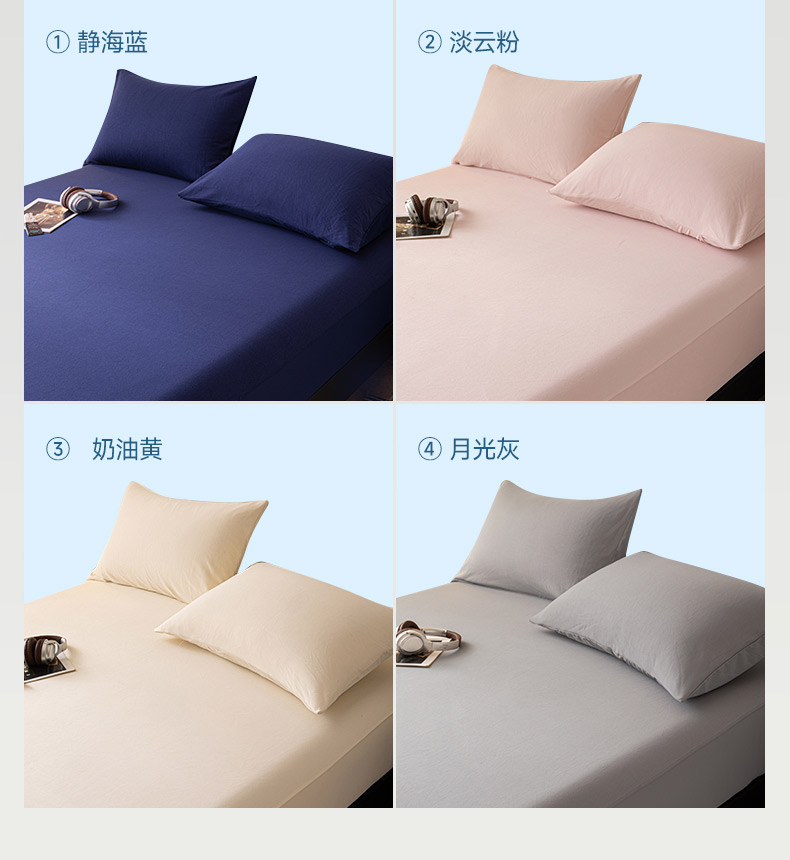 (总)百寐 2025新款纯色耐脏亚朵同款深度睡眠床笠枕套床笠保护套单床笠单品床笠单件床笠,淡云粉,静海蓝,奶油黄,月光灰,组合图仅供参考不可下单