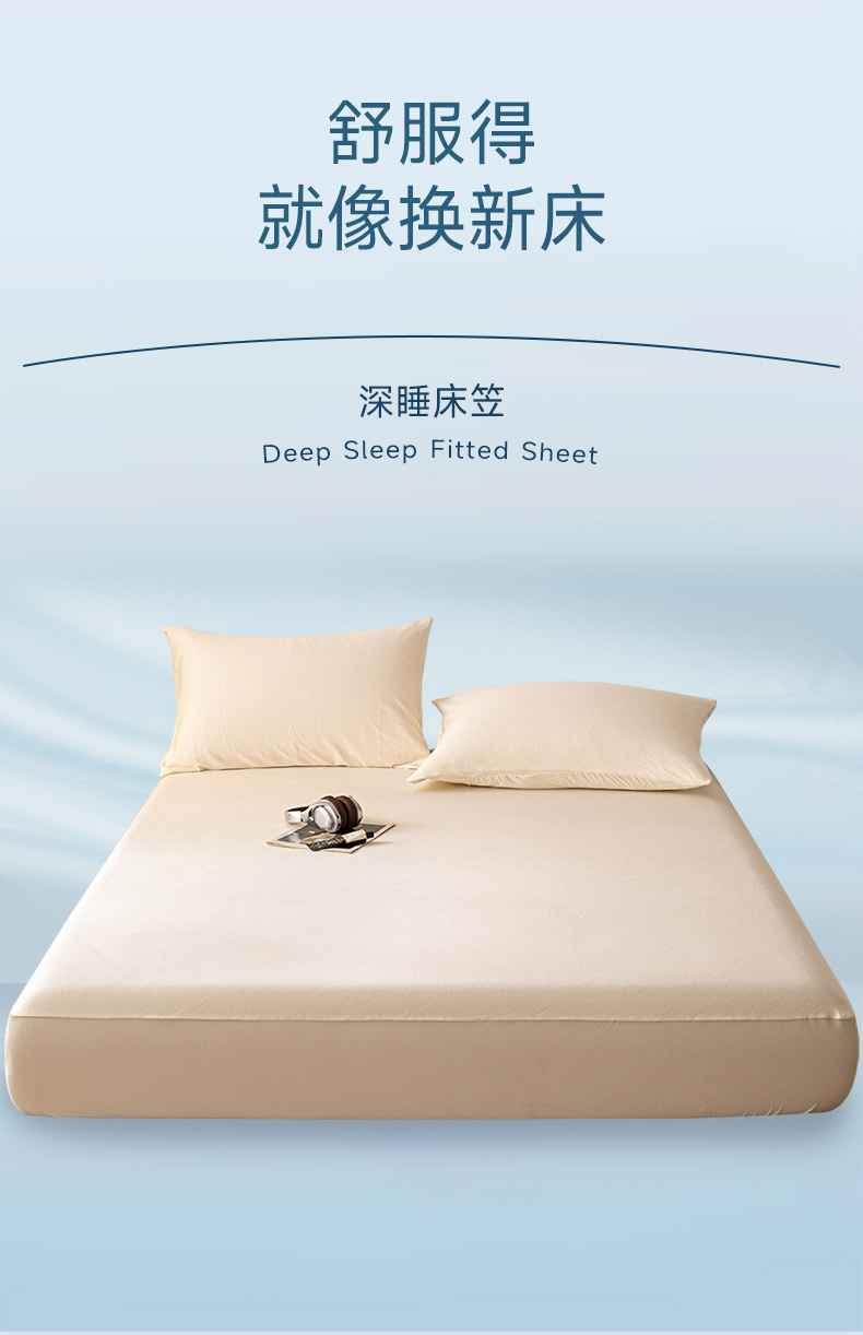 百寐 2025新款纯色耐脏亚朵同款深度睡眠床笠枕套床笠保护套单床笠单品床笠单件床笠 奶油黄