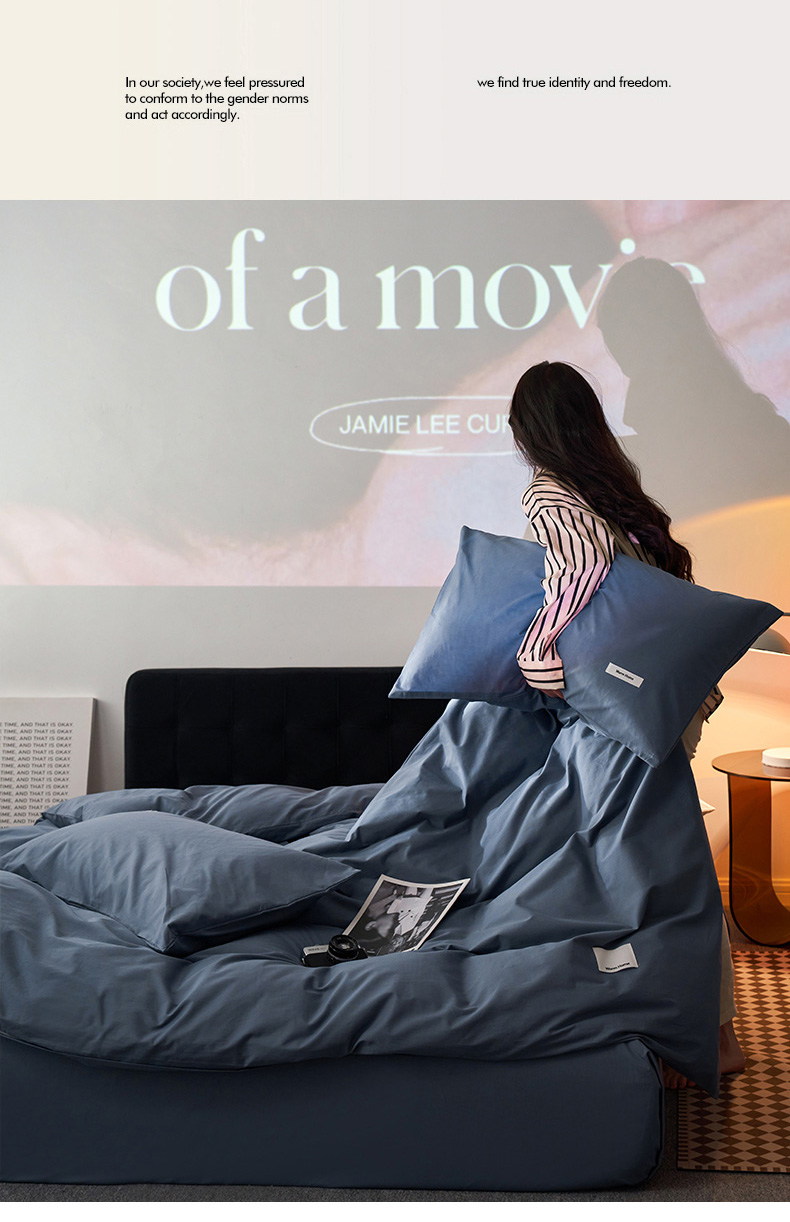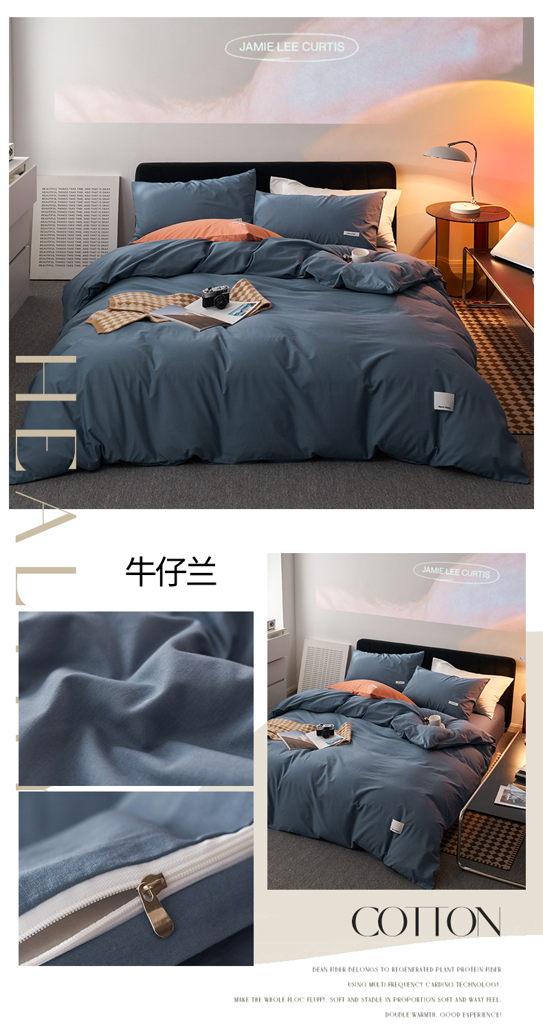 当前位置: 91家纺网 > 商品网购 > 床品套件 > 四件套 > 全棉普通四件套 > 蓝邻家纺 2025新款A类全棉纯棉水洗棉纯色贴标系列四件套-风格一 牛仔兰