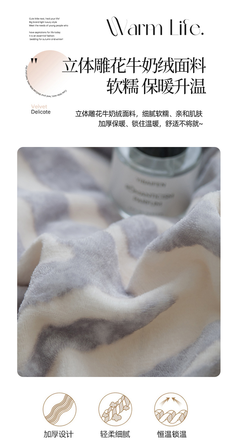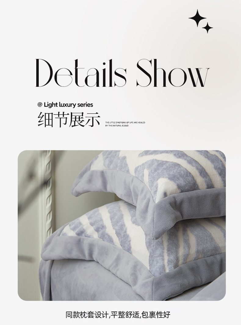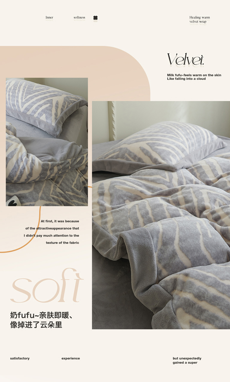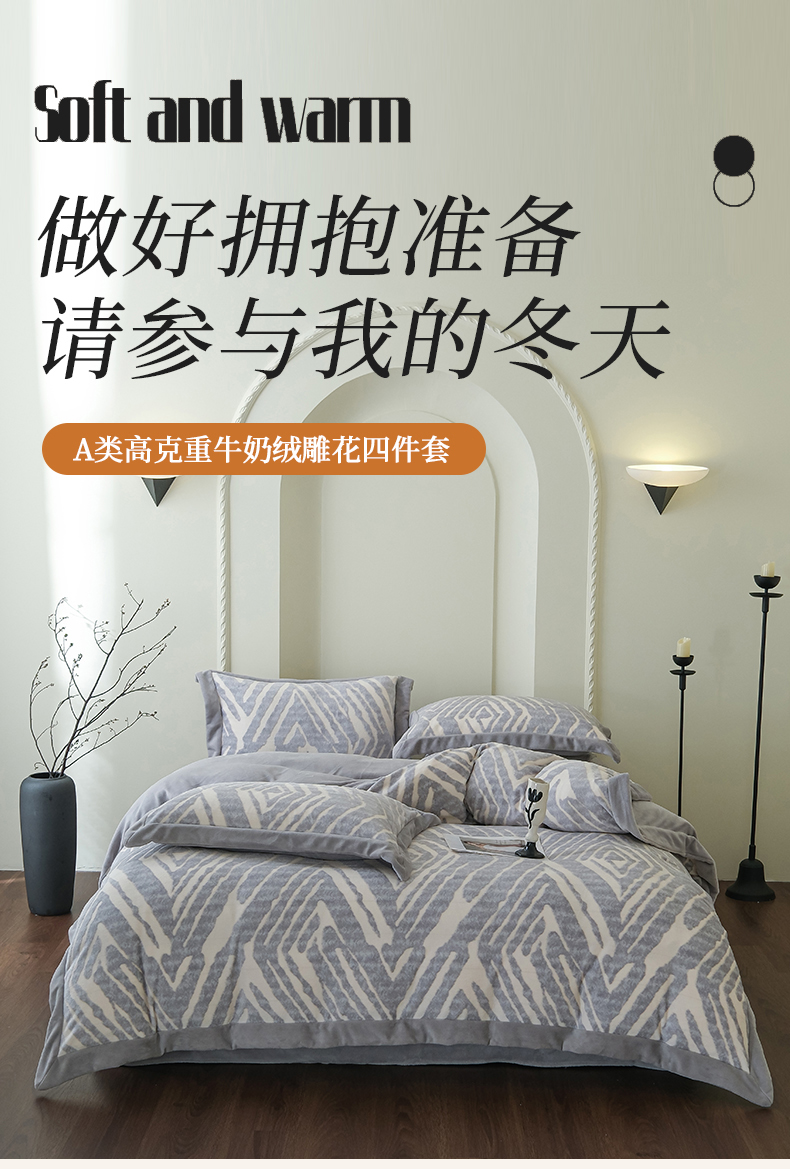 商品名称:米奈家居 2025新款立体雕花拼角款牛奶绒四件套 浮光-灰