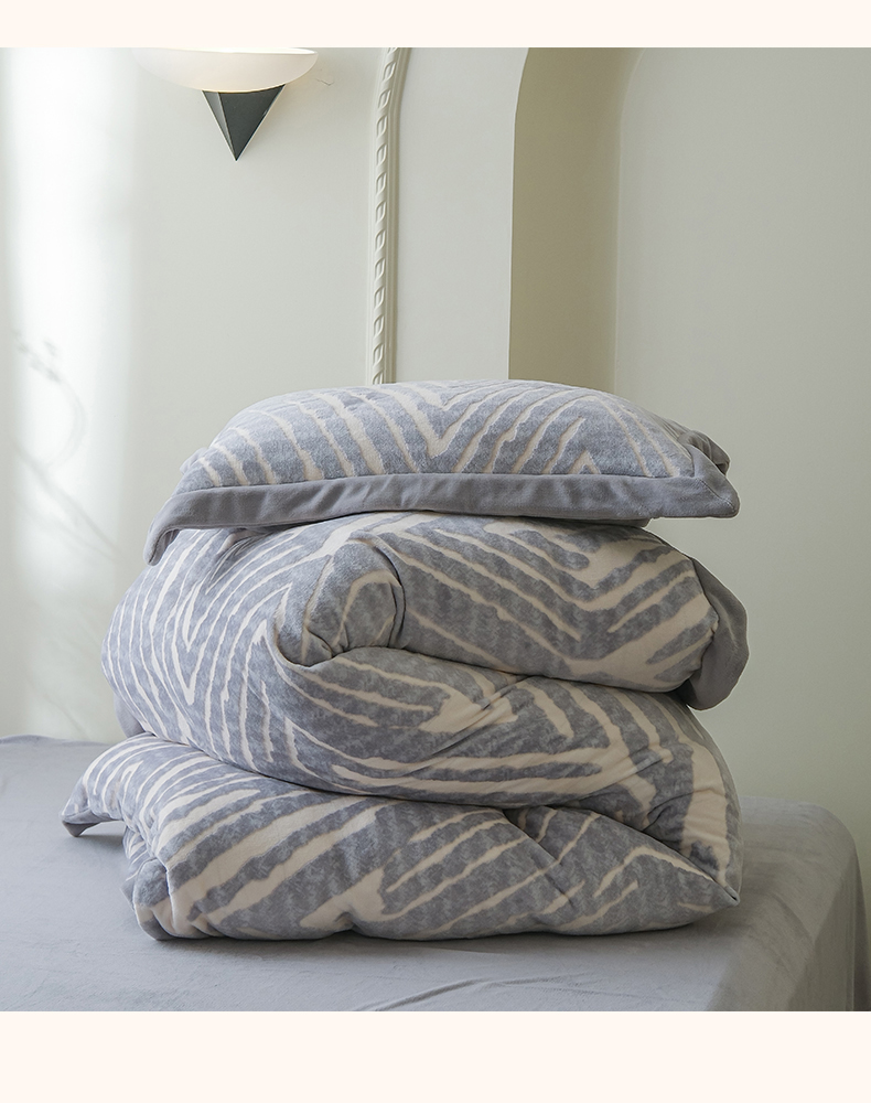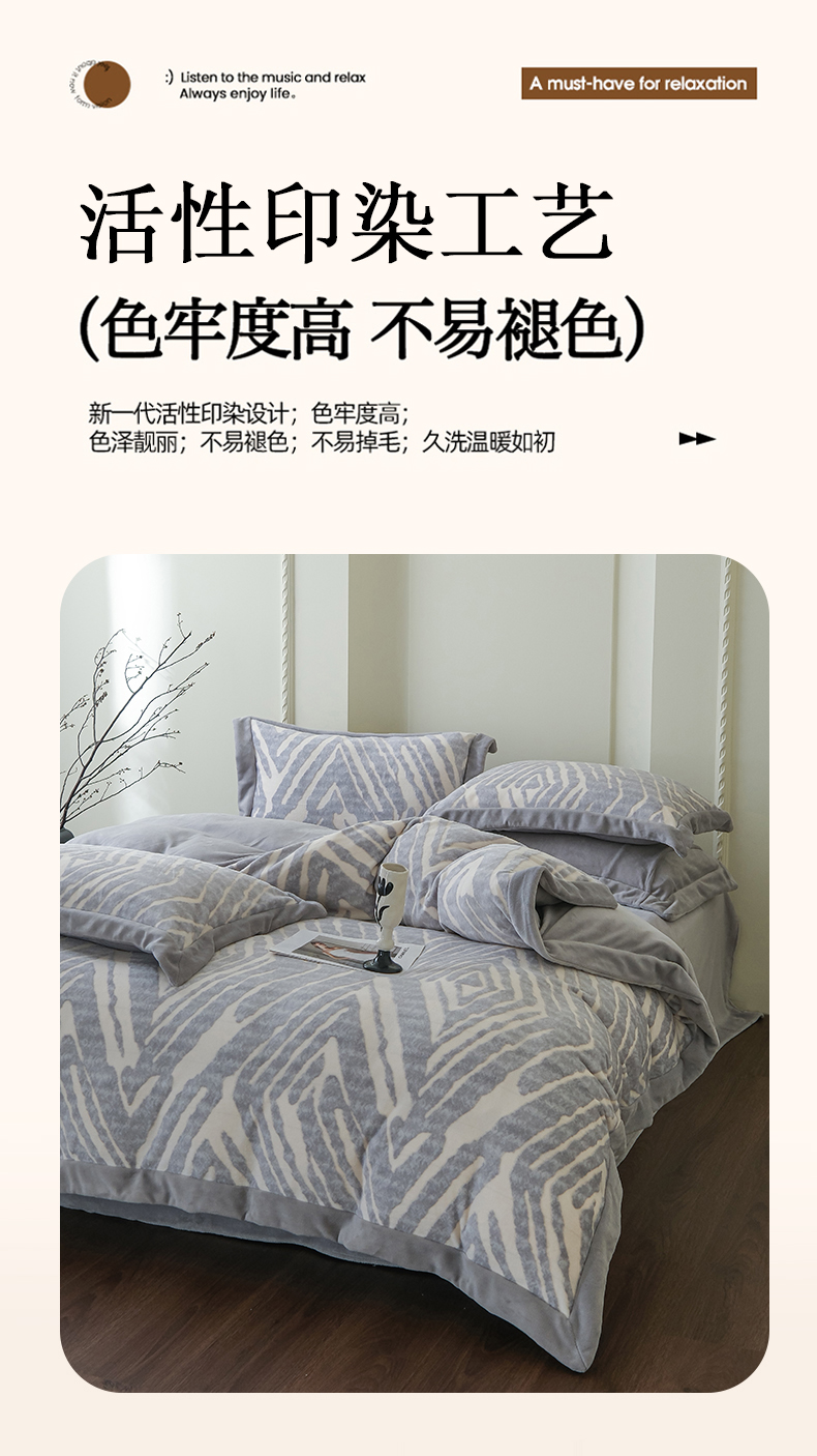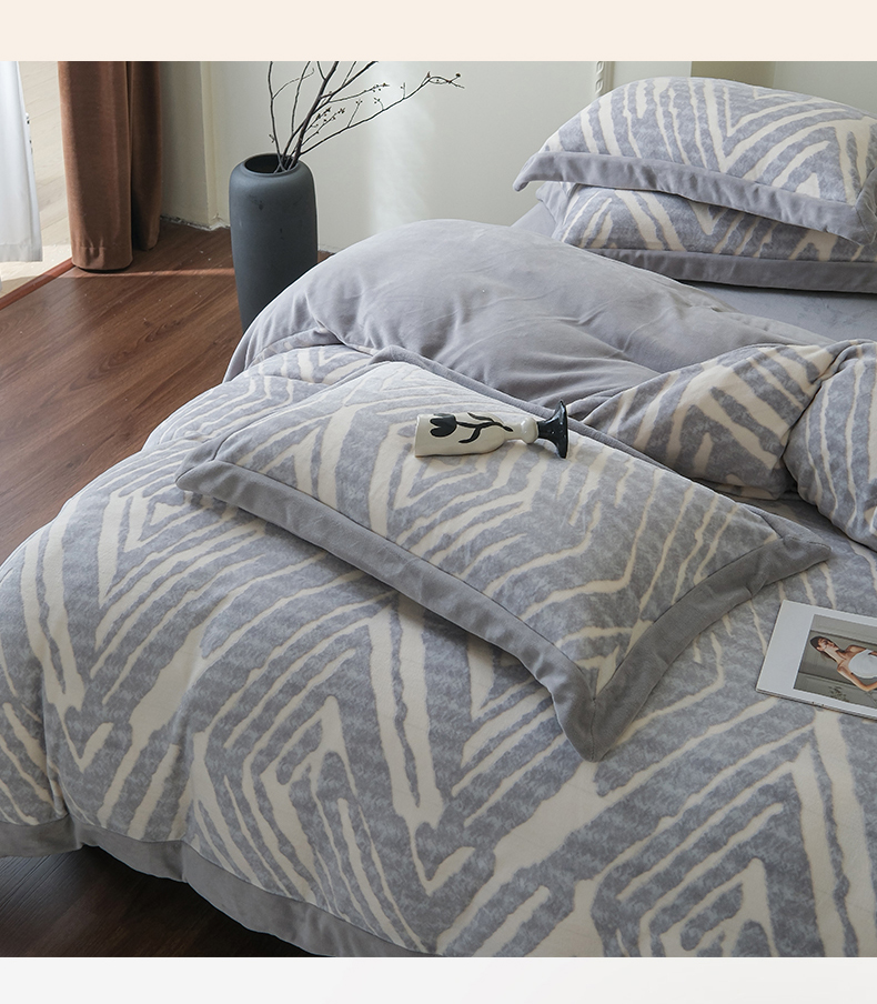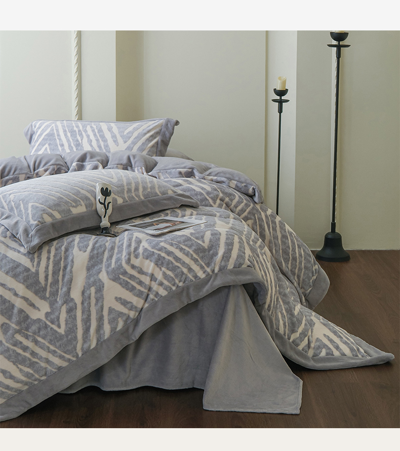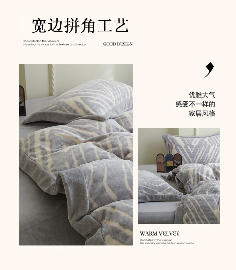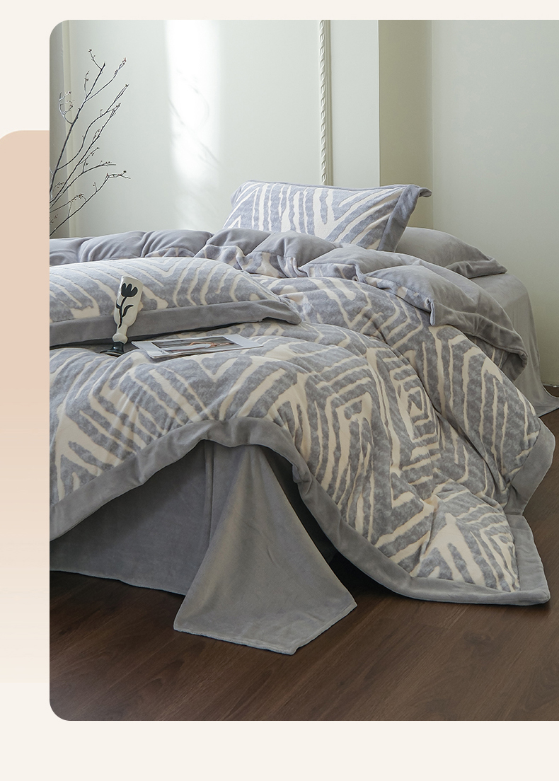 米奈家居 2025新款立体雕花拼角款牛奶绒四件套 浮光-灰