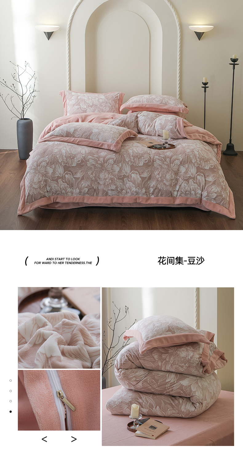 (总)米奈家居 2025新款立体雕花拼角款牛奶绒四件套,浮光-灰,浮光-咖,花间集-豆沙,花间集-蓝,花如玉-蓝,花如玉-驼,秋影-粉,秋影-灰蓝
