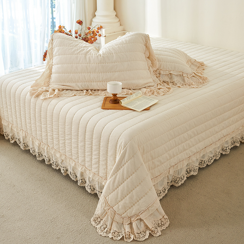 商品名称:桂雅居 2025新款舒适麻棉麻蕾丝花边单床盖床盖单件 麻本色