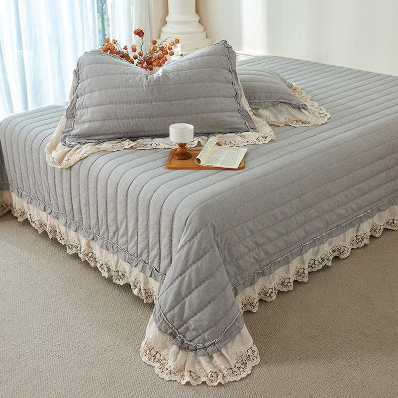 (总)桂雅居 2025新款舒适麻棉麻蕾丝花边单床盖床盖单件,海棠红,栗壳色,麻本色,烟墨灰,组合图仅供展示不可下单,手拎袋包装,清婉花语-灰,秋意-红,素锦-咖