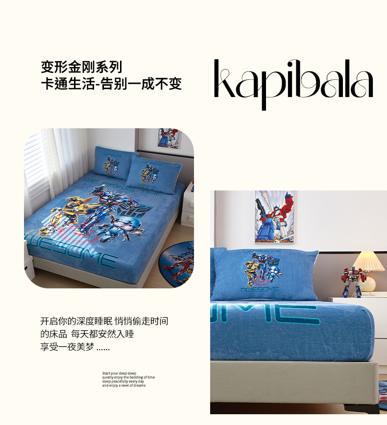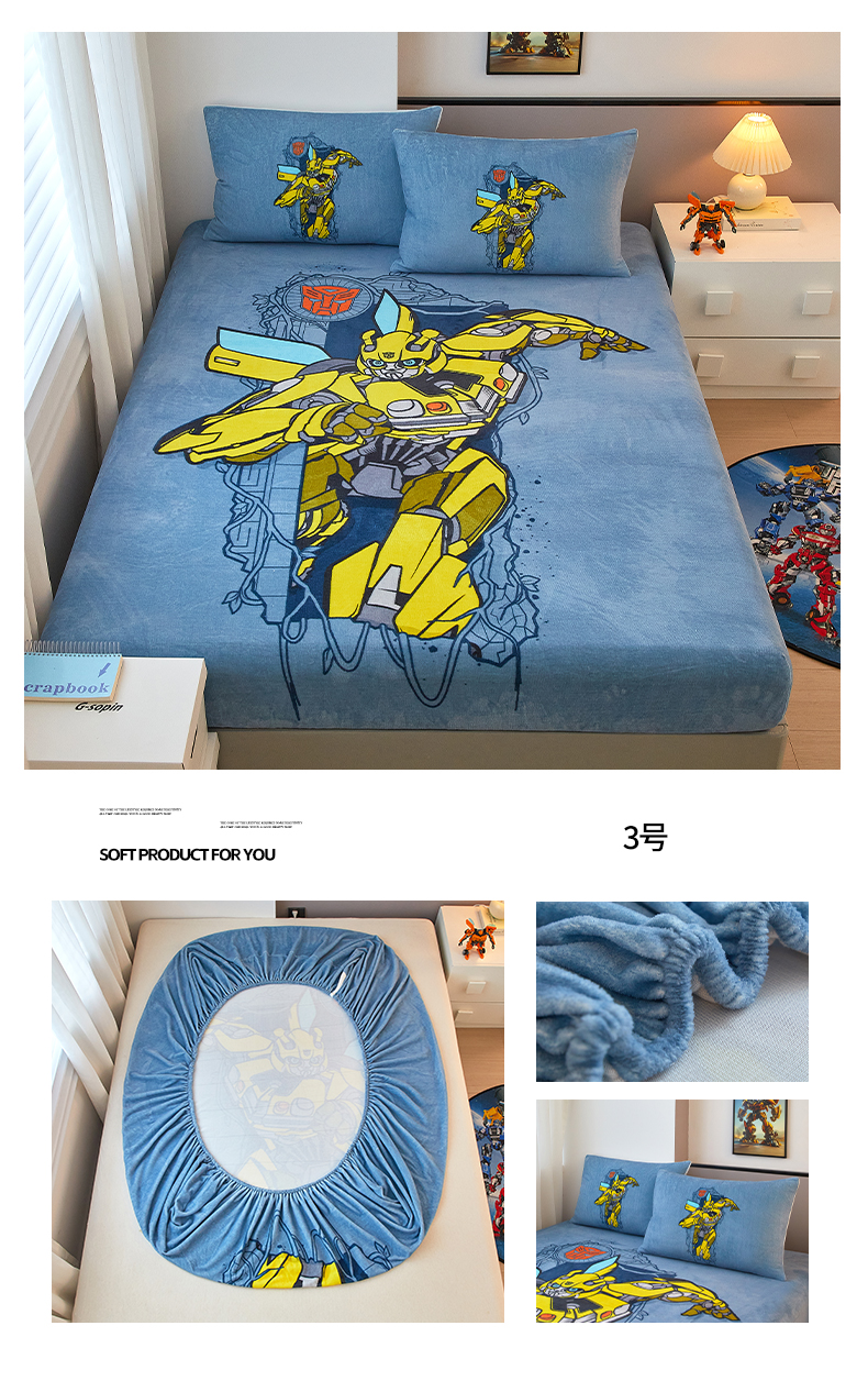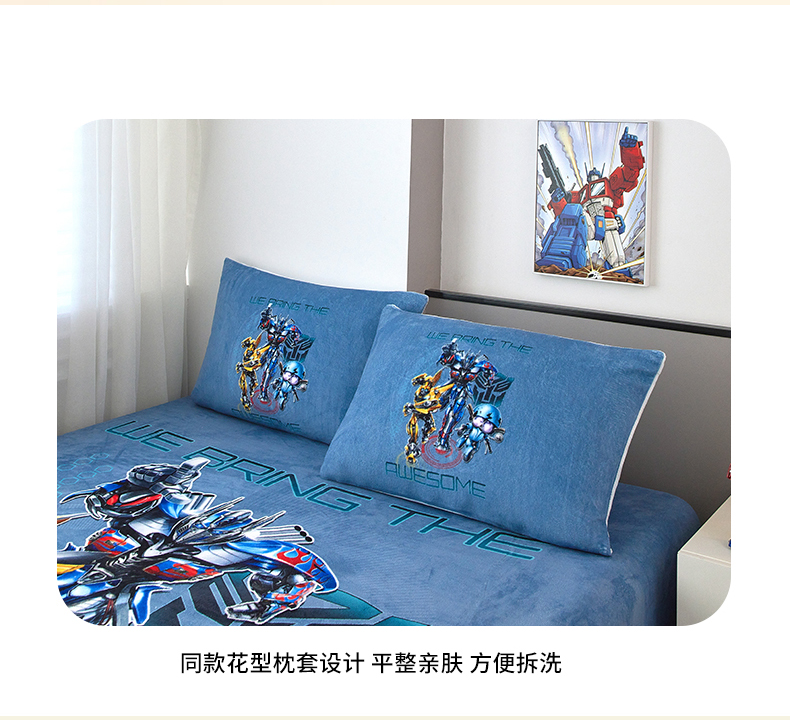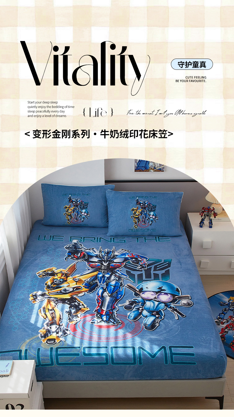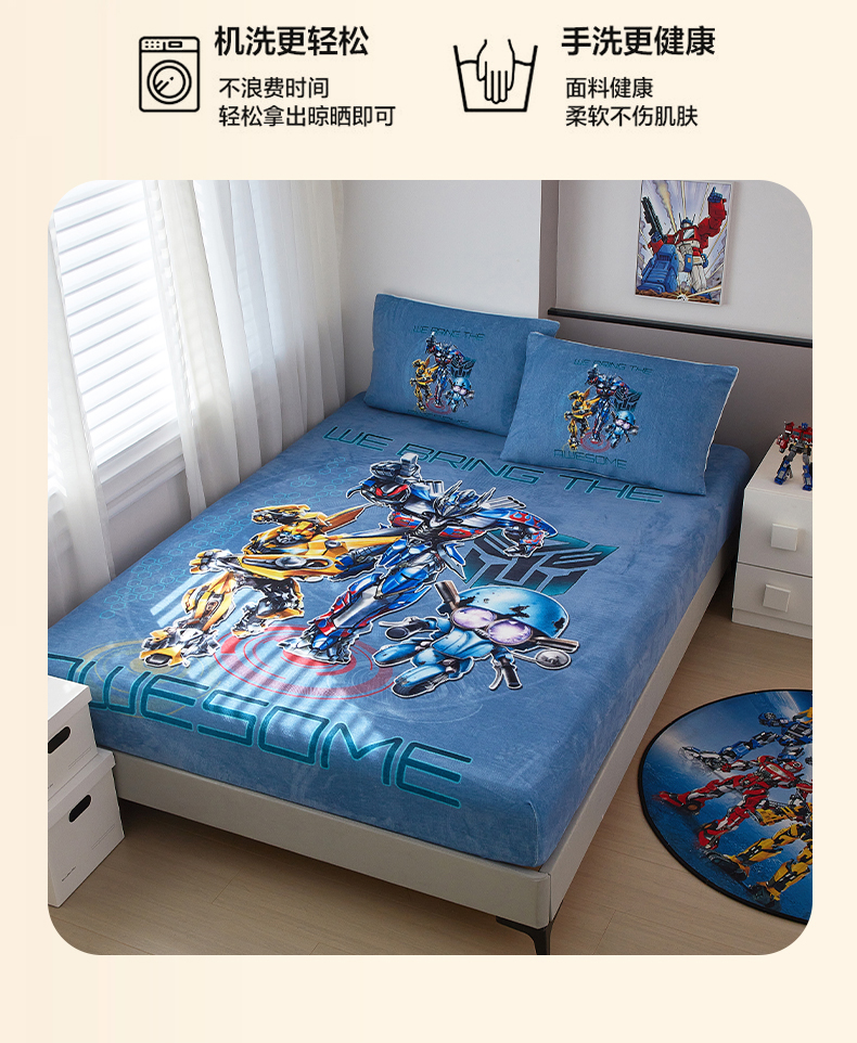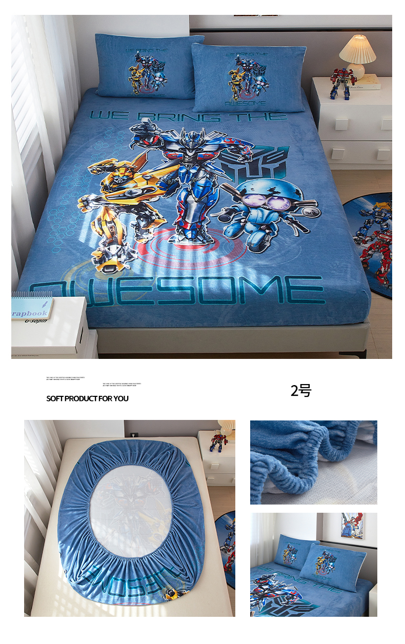 商品名称:蘭菲家纺 2025新款高克重亲肤保暖牛奶绒单品床笠-变形金刚 2号