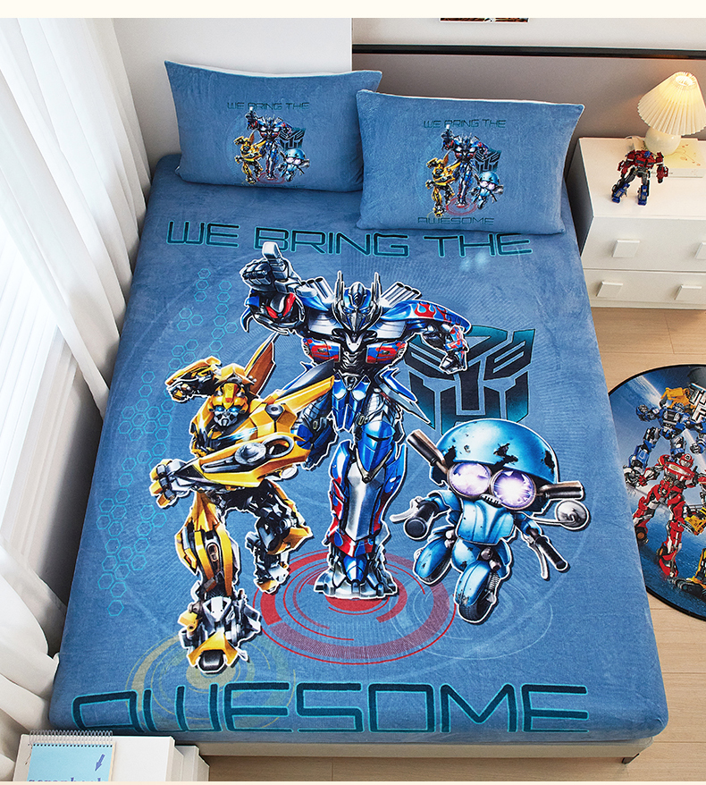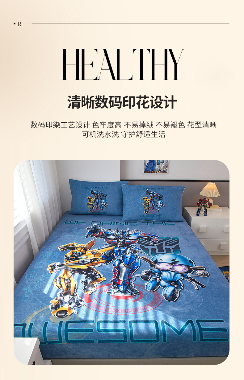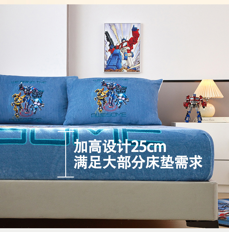 蘭菲家纺 2025新款高克重亲肤保暖牛奶绒单品床笠-变形金刚 2号