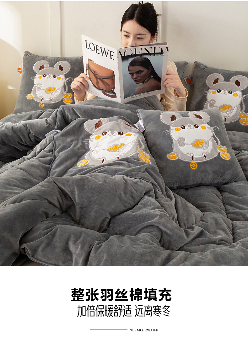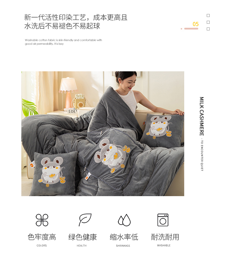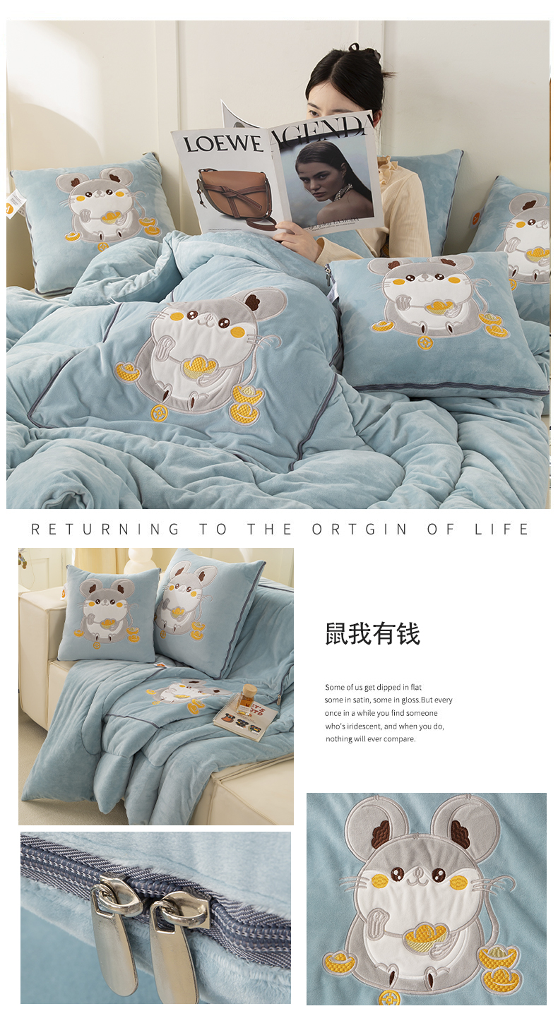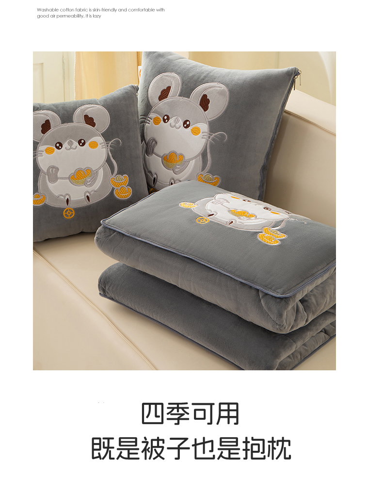 (总)多今家纺 2025新款加厚婴儿绒贴布刺绣抱枕被子-鼠我有钱系列,鼠我有钱-深灰,鼠我有钱-星郎蓝,鼠我有钱-薄荷粉,鼠我有钱-凤信紫,鼠我有钱-浅灰