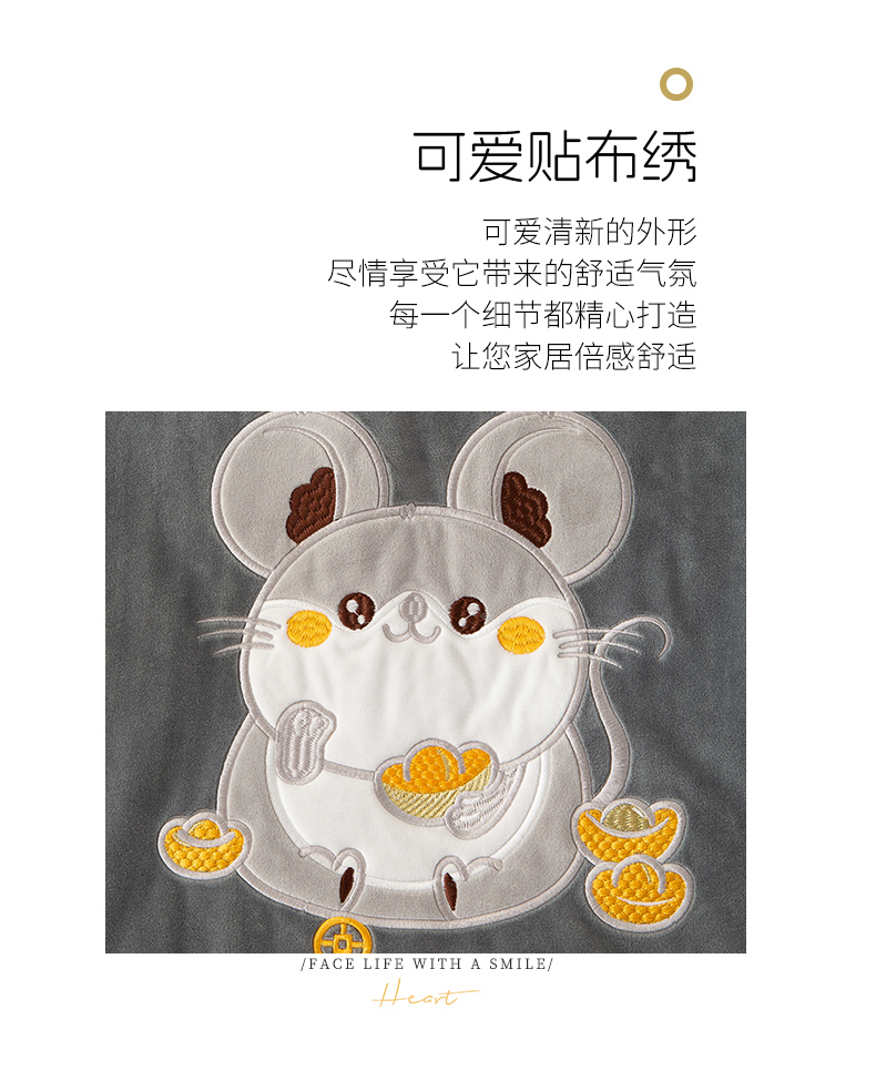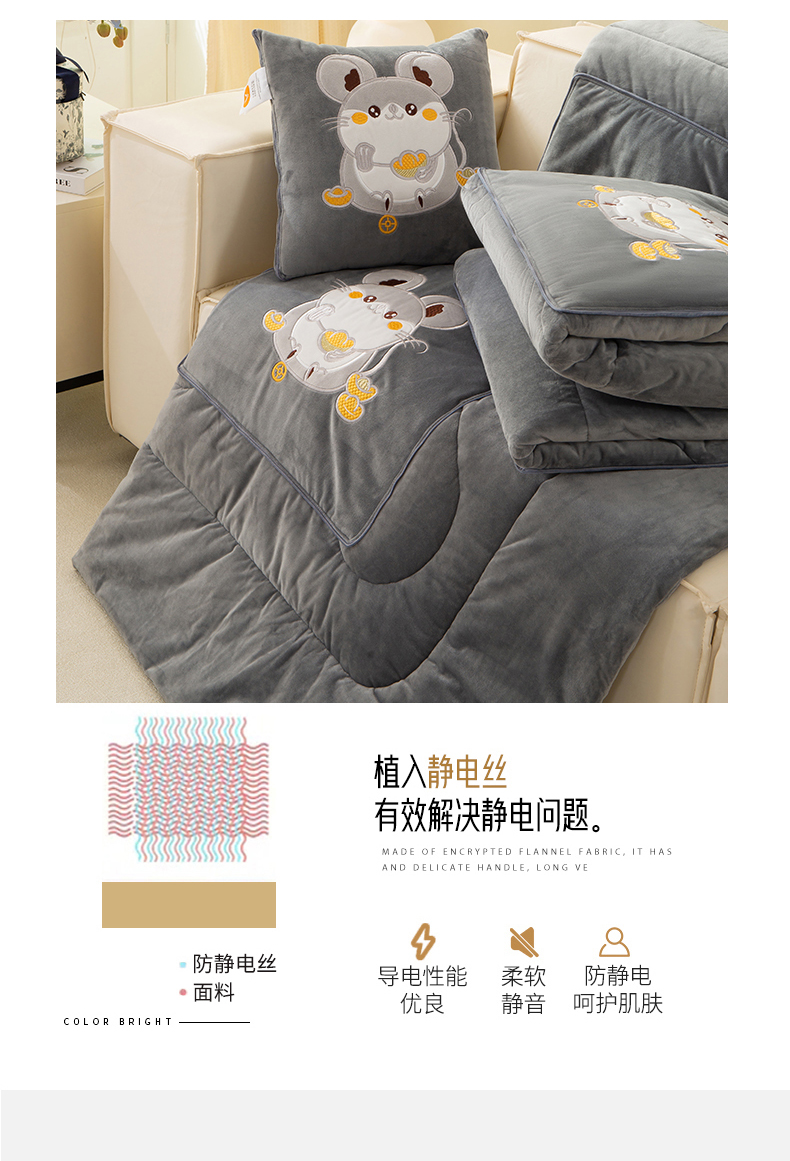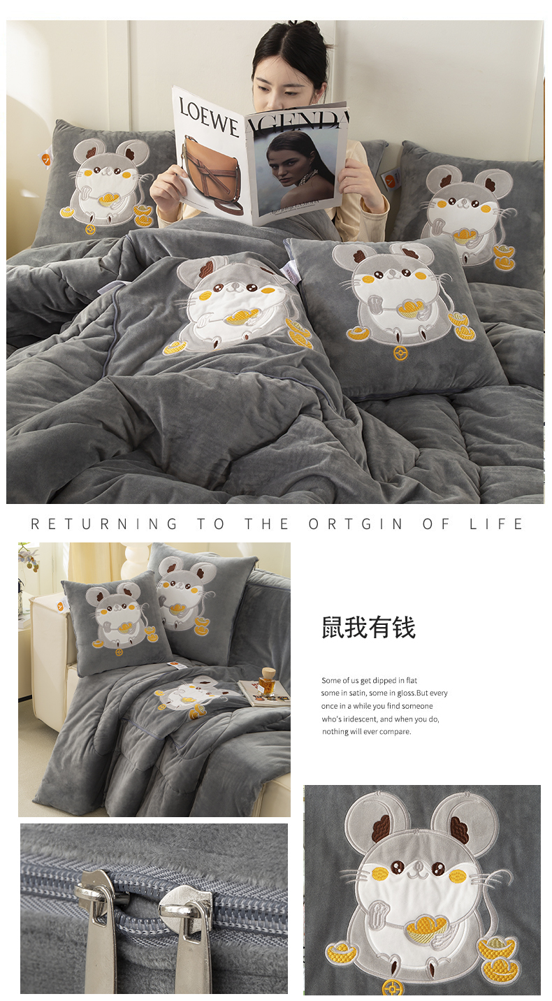 商品名称:多今家纺 2025新款加厚婴儿绒贴布刺绣抱枕被子-鼠我有钱系列 鼠我有钱-深灰