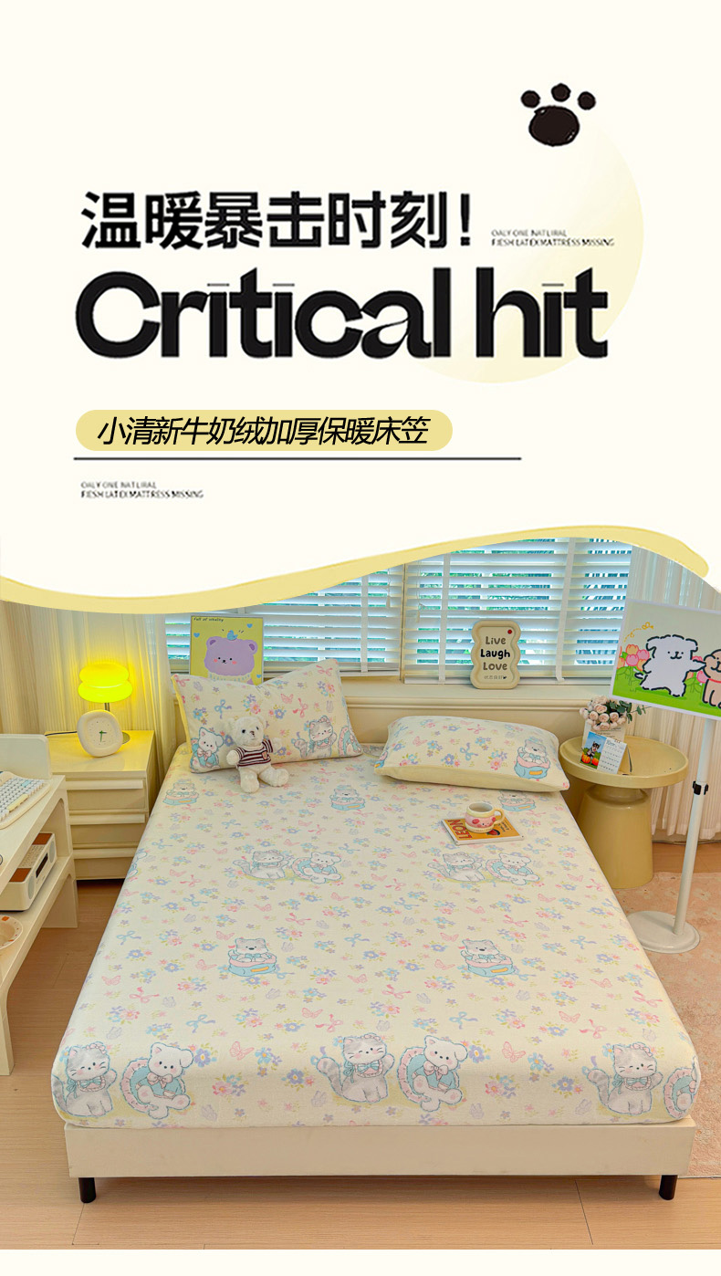 • 91家纺网 家纺一手货源 找家纺 慕澄家纺 2025新款牛奶绒印花床笠床笠单品 床笠-奶奶可爱