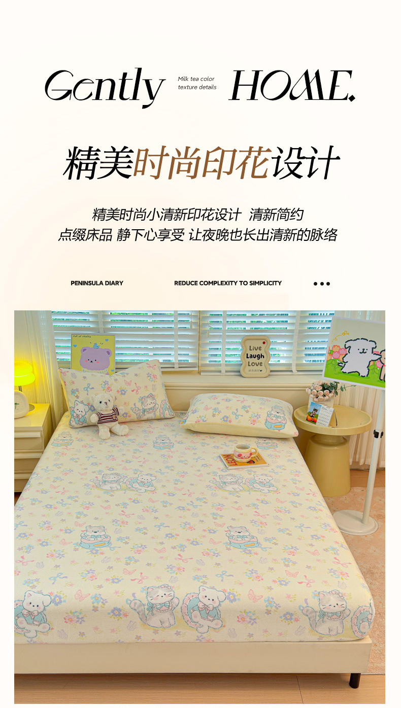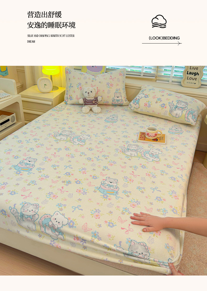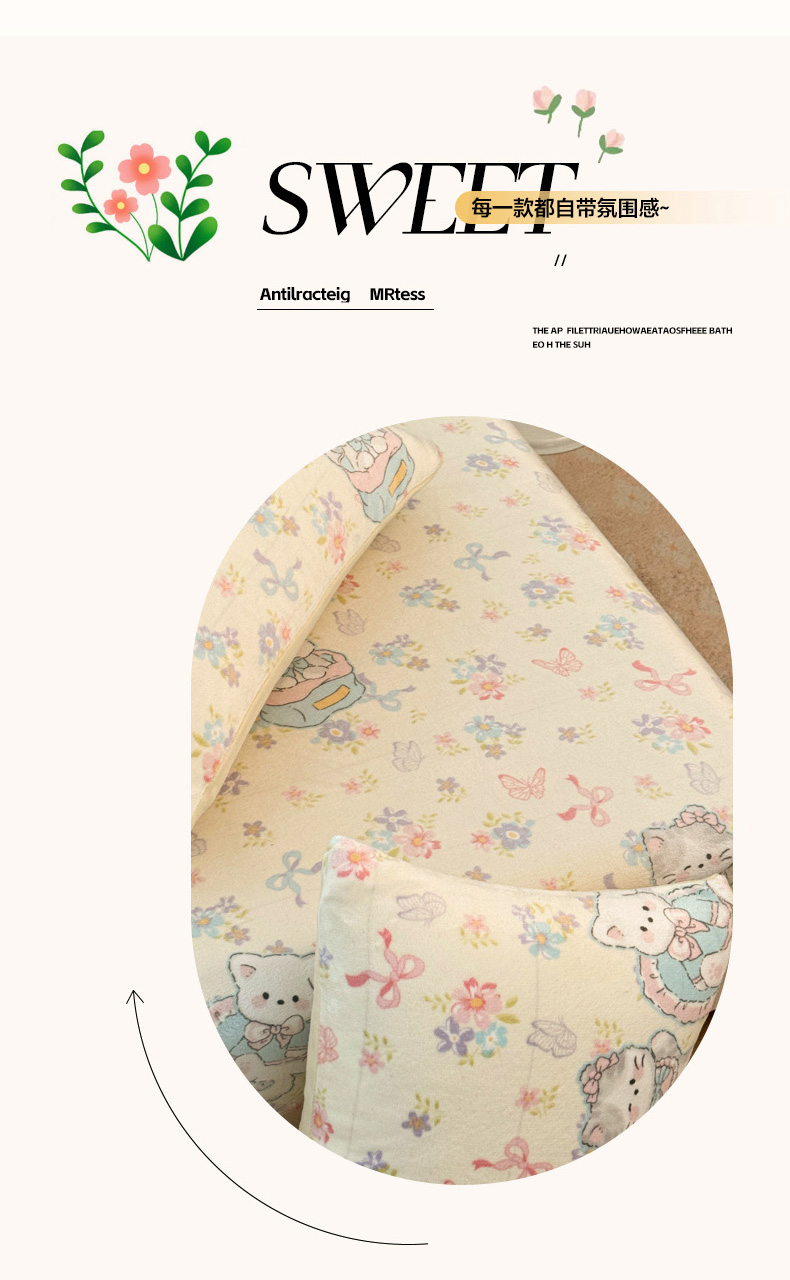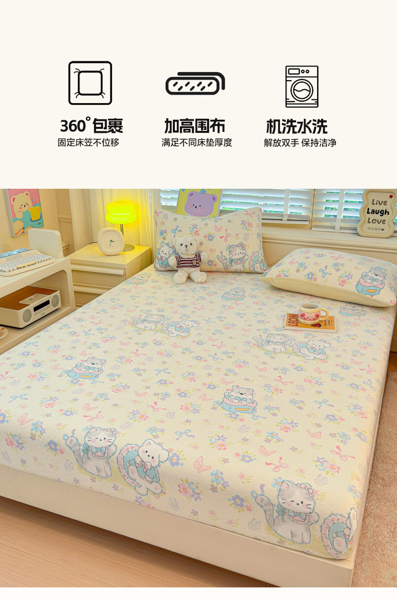 慕澄家纺 2025新款牛奶绒印花床笠床笠单品 床笠-奶奶可爱