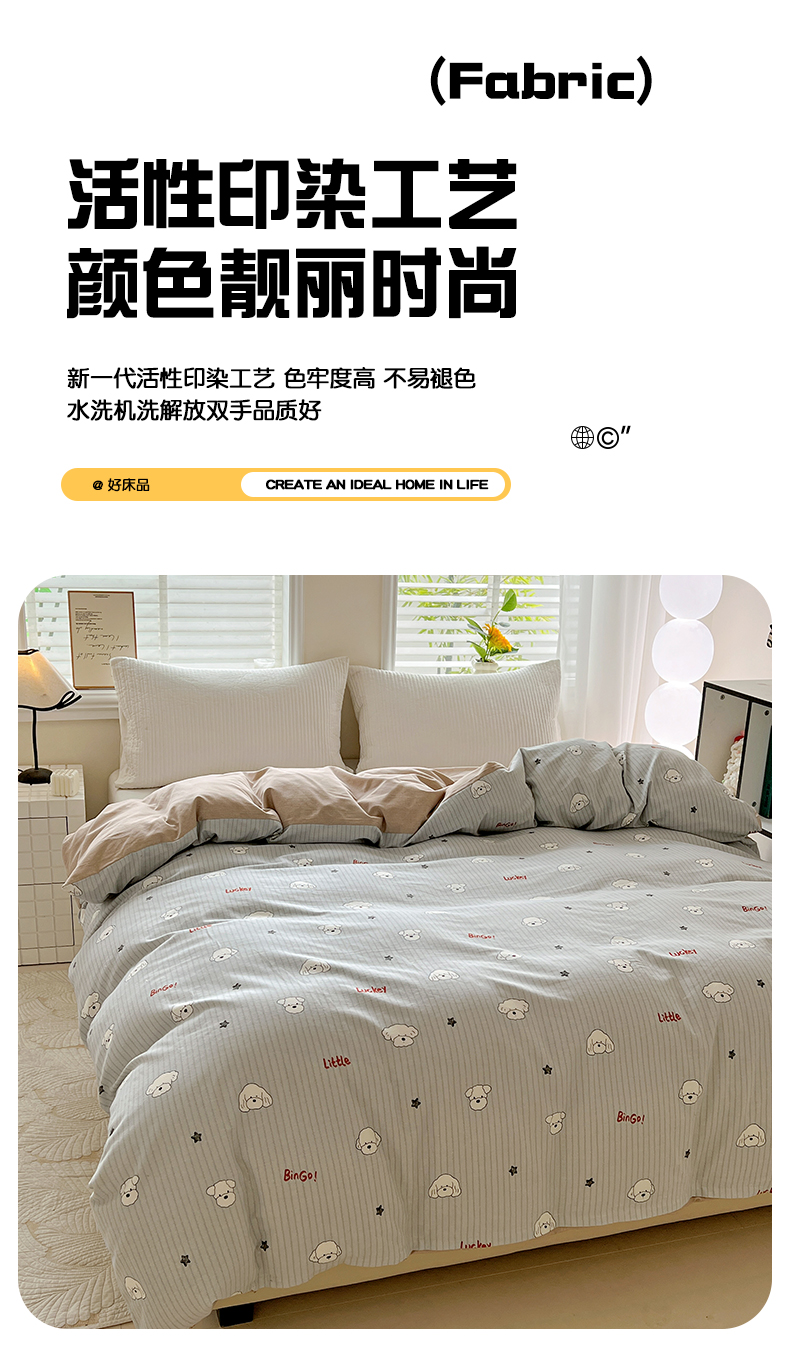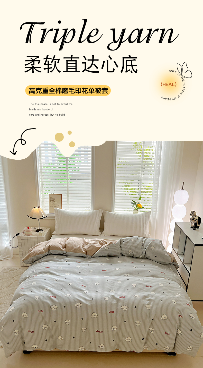• 91家纺网 家纺一手货源 找家纺 依庭 2025新款高克重全棉纯棉磨毛印花单被套 皮皮狗