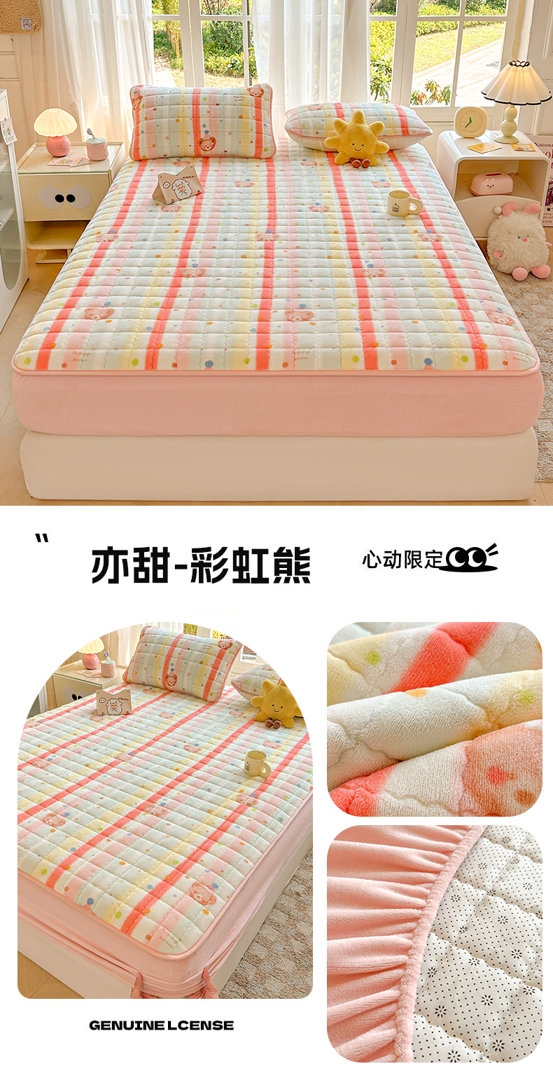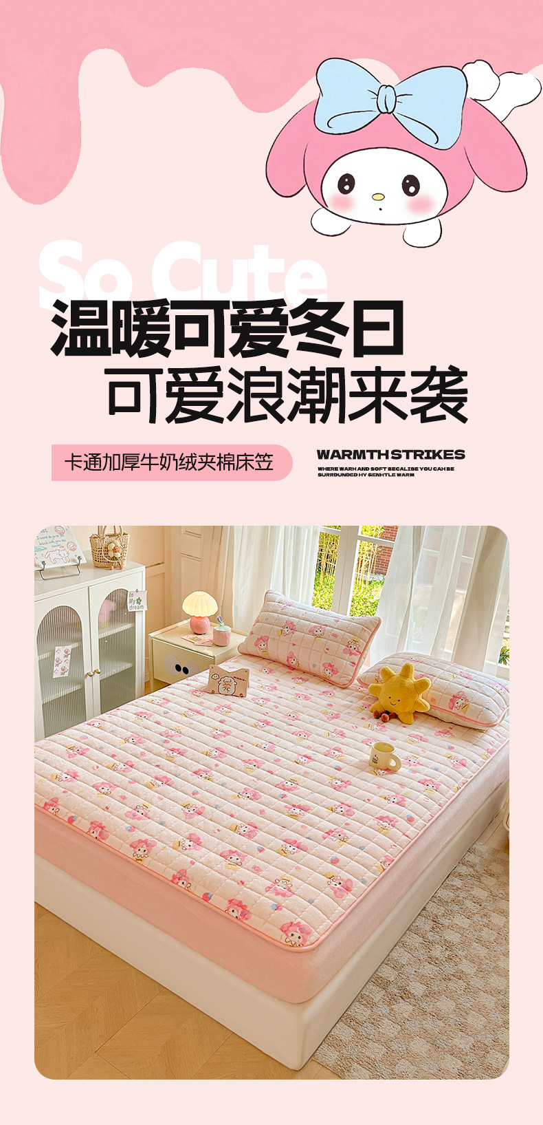 • 91家纺网 家纺一手货源 找家纺 澜妃 2025新款加厚牛奶绒卡通夹棉单床笠床笠单件单品床笠-亦甜系列 亦甜-少女心